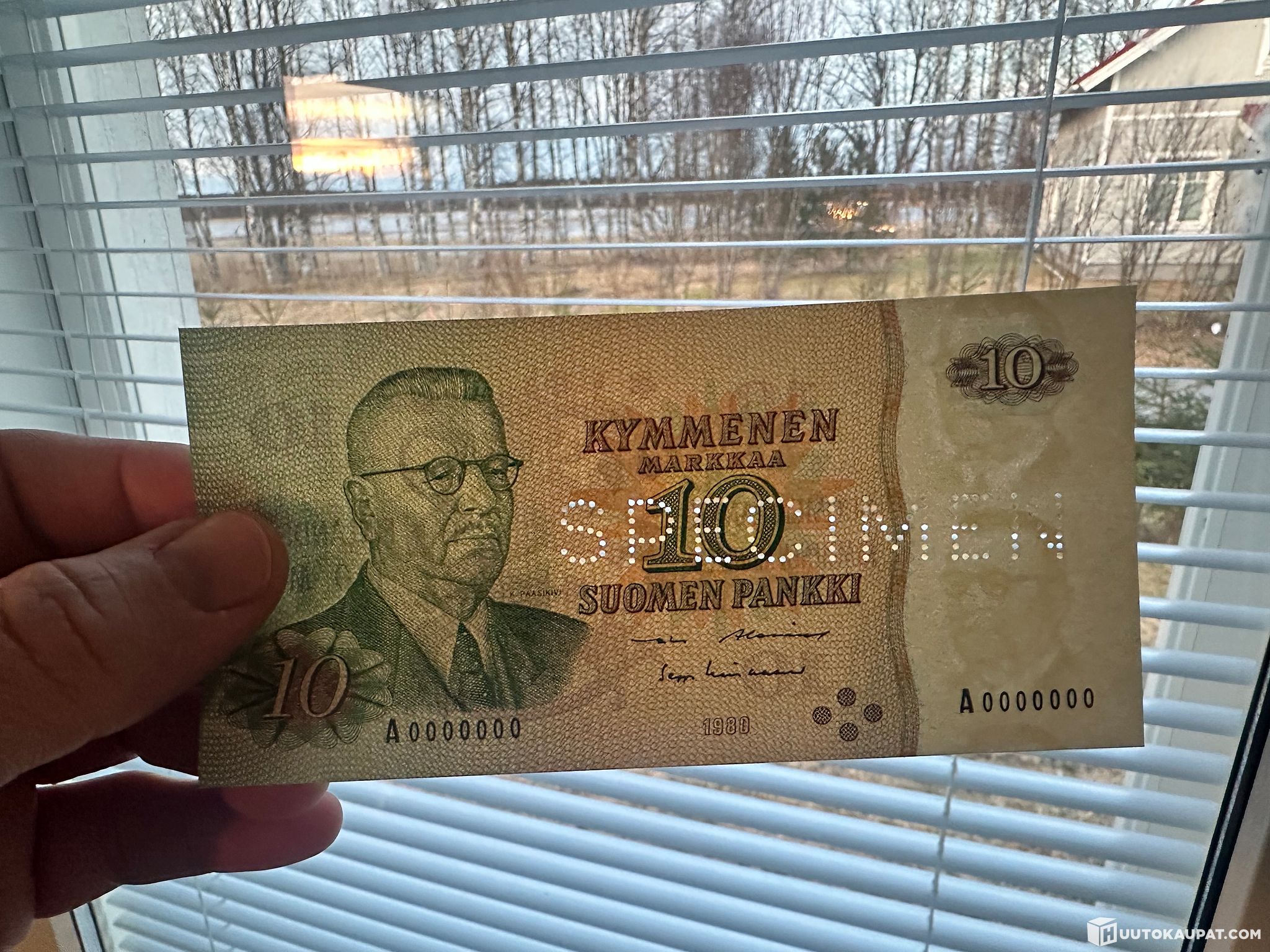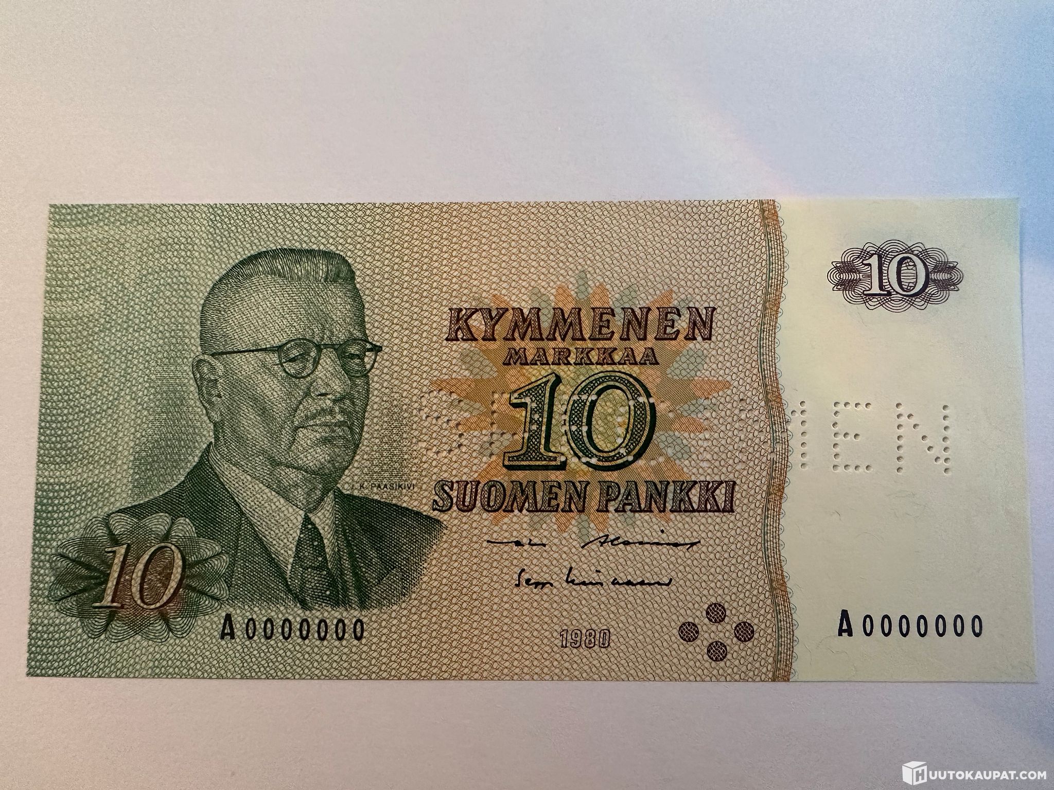 Uncirculated, flawless specimen banknote from my collection: 10 markkaa, 1980.