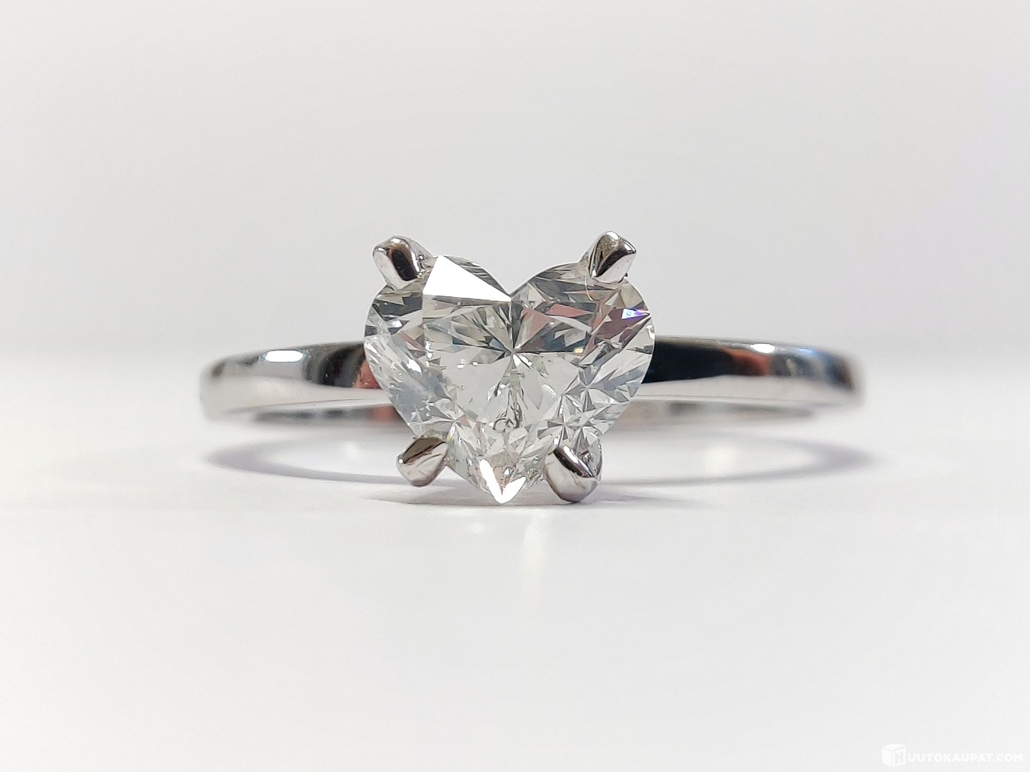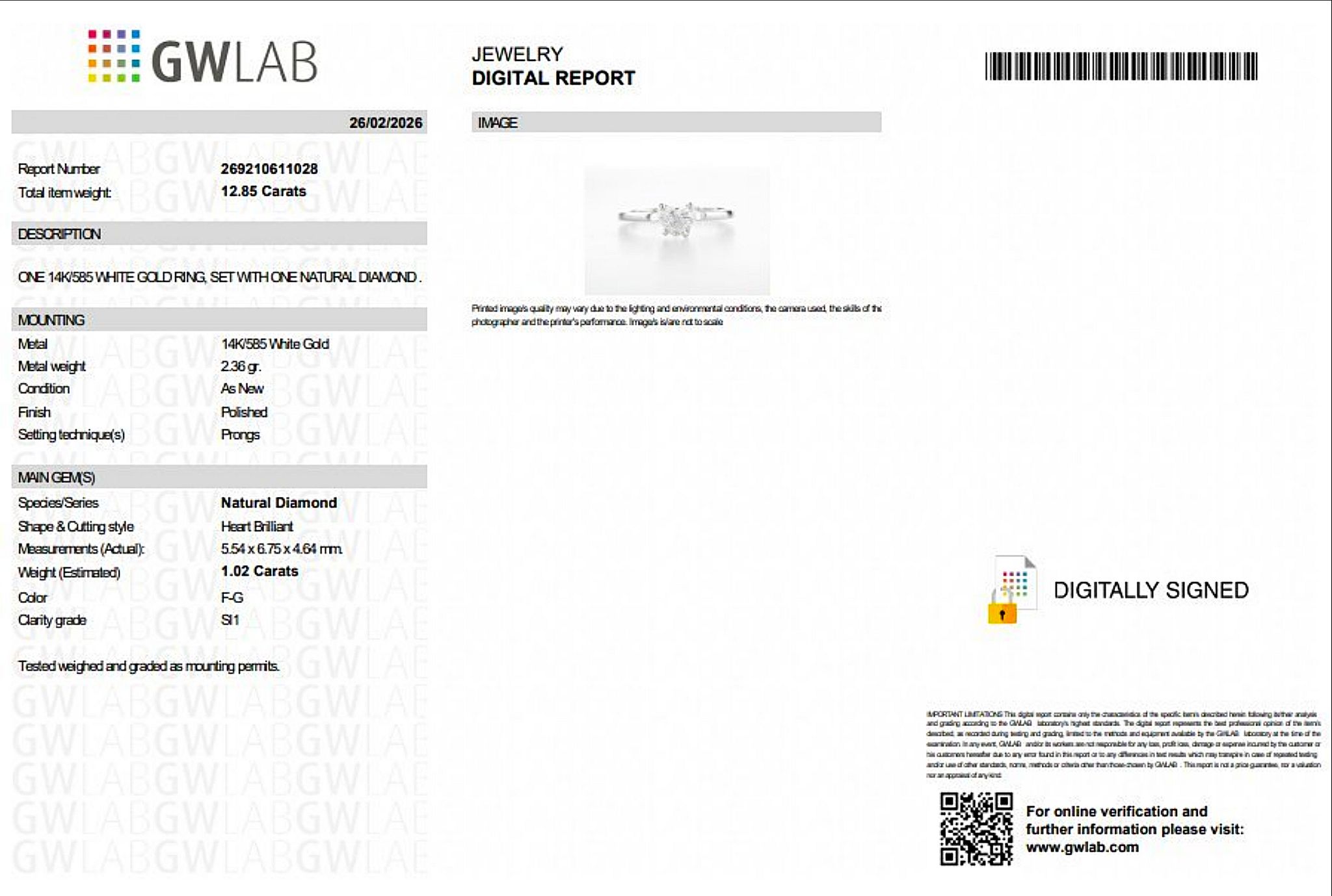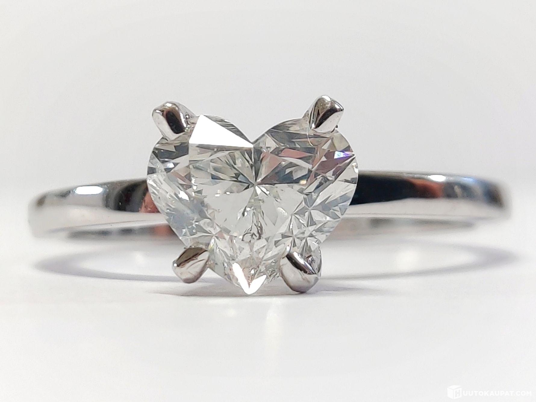 Really beautiful 1.02 carat heart-brilliant-cut diamond ring in 585 14K white gold. An exceptionally precise GemWizard gem report based on digital techniques classifies the diamond by both traditional and digital methods.