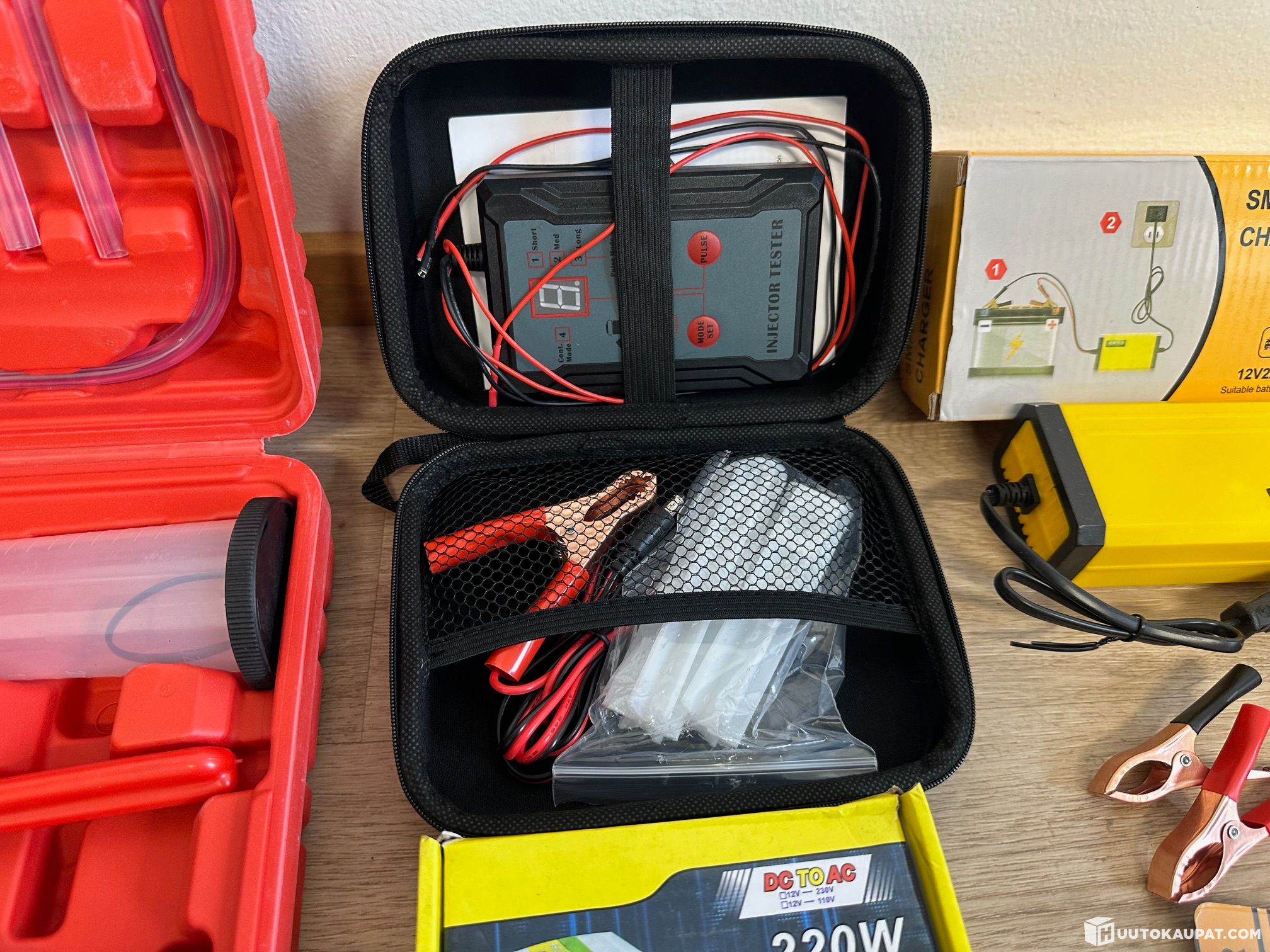 Fuel injector tester, in a carrying case