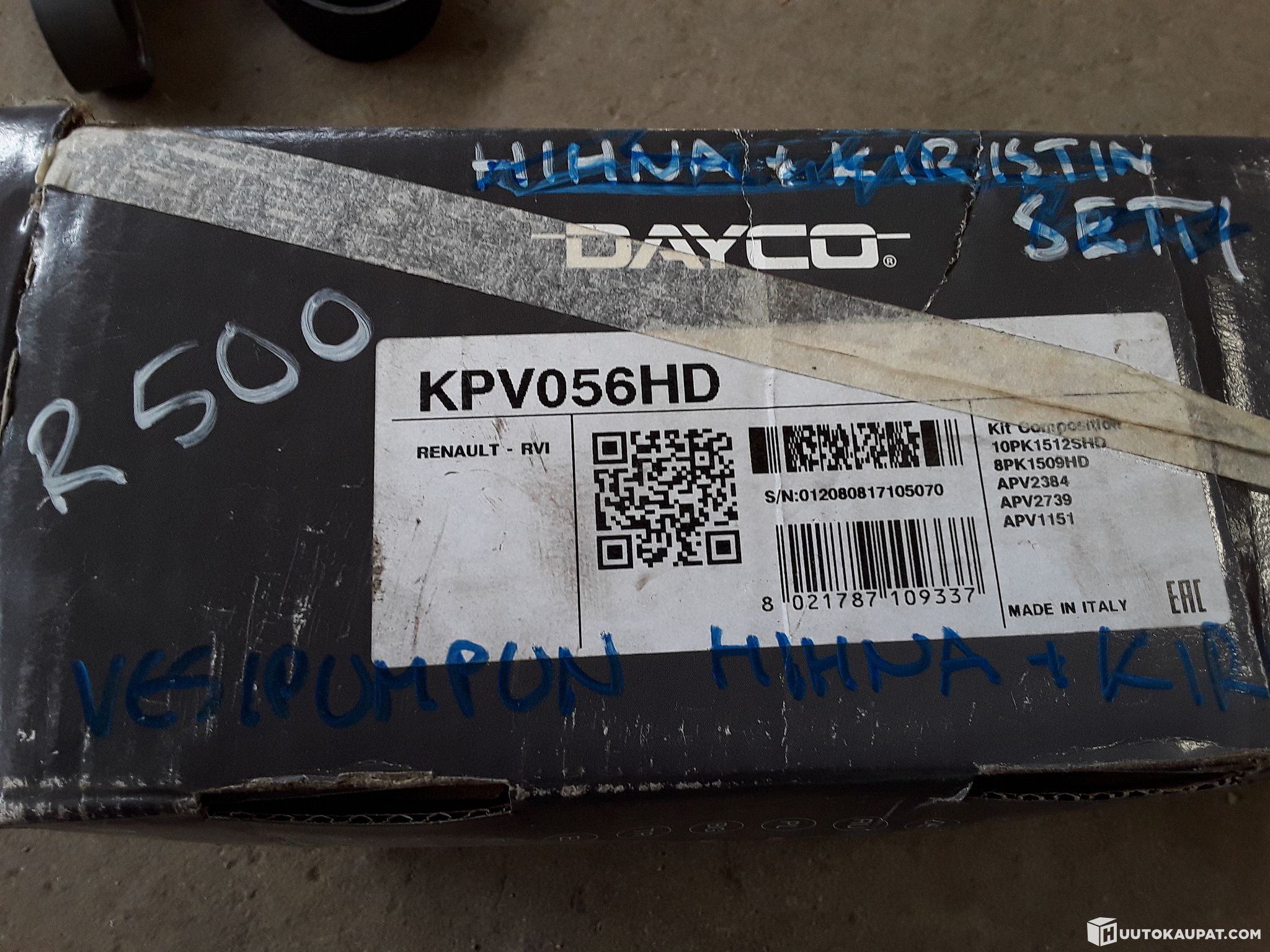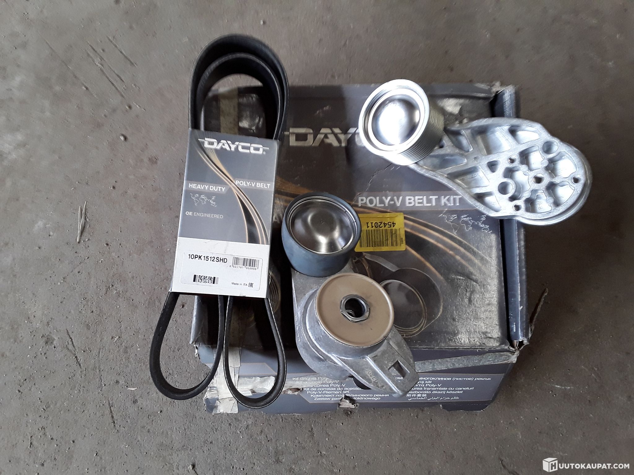 New belt and tensioner kit. Fits at least Sisu R500.