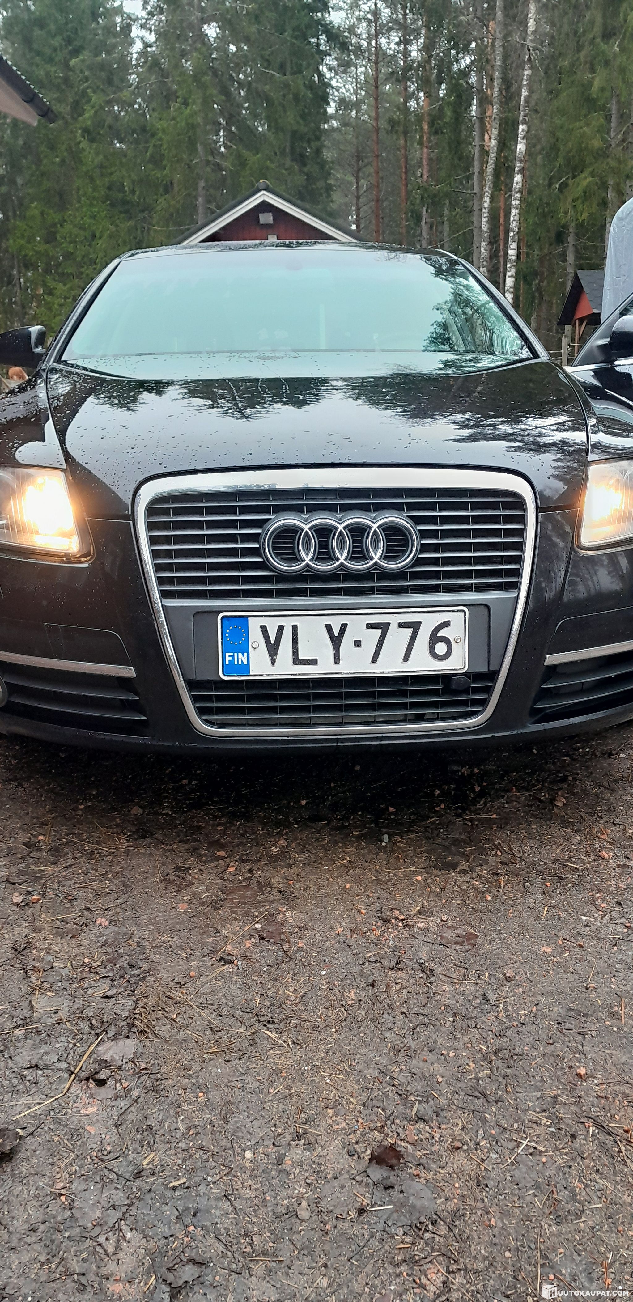 The Audi has a couple of warning lights on — the parking heater and the brake-wear indicator — although the parts still have some surface life. Small typical rust spots have been repaired on the lower door areas. The driver's seat fabric is slightly worn, visible in the pictures. The left rear door does not open from the outside. Well maintained; the most recent entries are shown in the service book. An affordable and comfortable car. For winter there are studded tyres and an engine-block heater internal plug. Happy Easter and spring. Regards, Hannu.