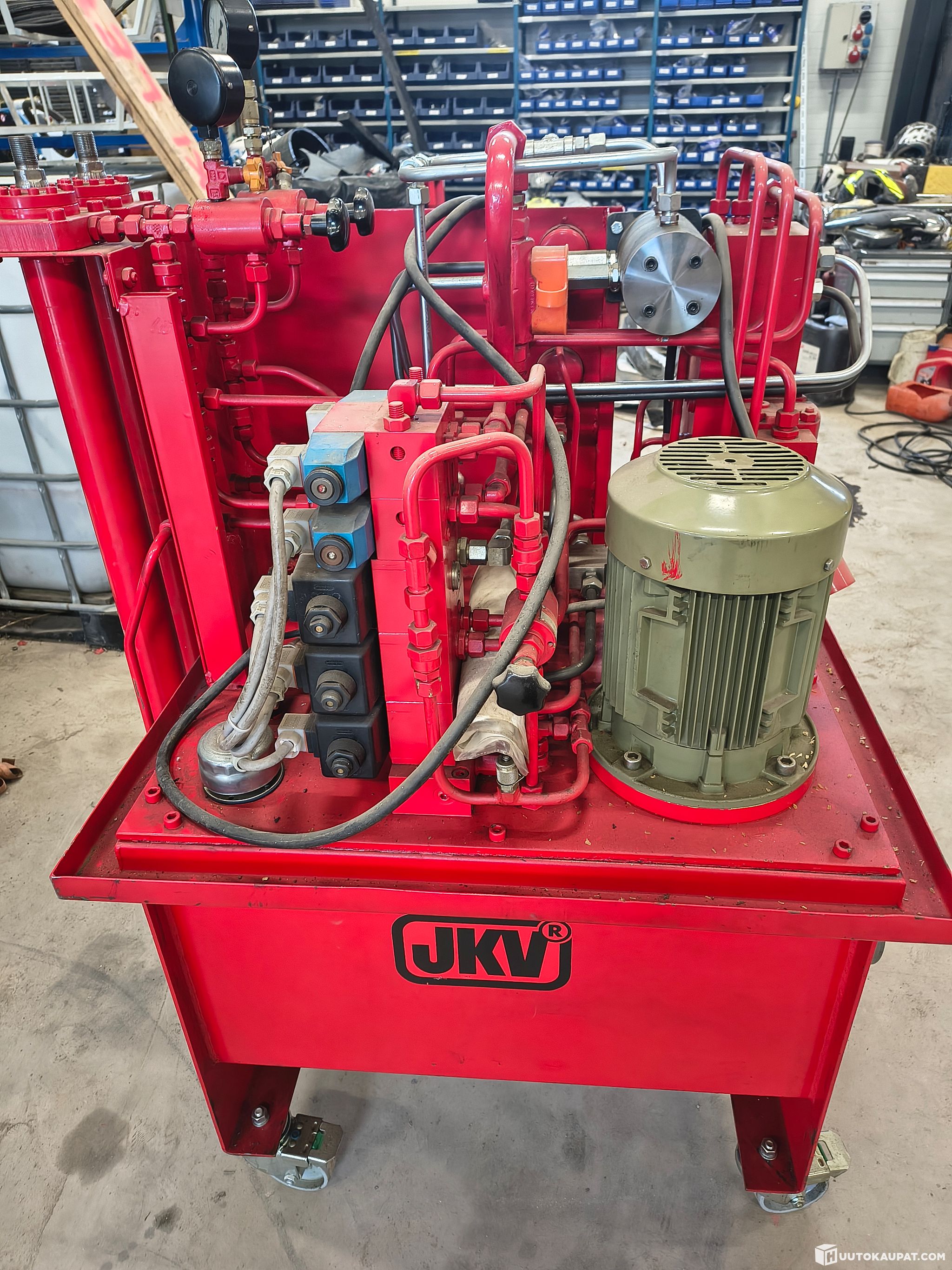 Hydraulic test unit. With a small modification it can be used as a hydraulic power unit. Like new — used at a vocational school. Hydraulic cylinders have been test-run.