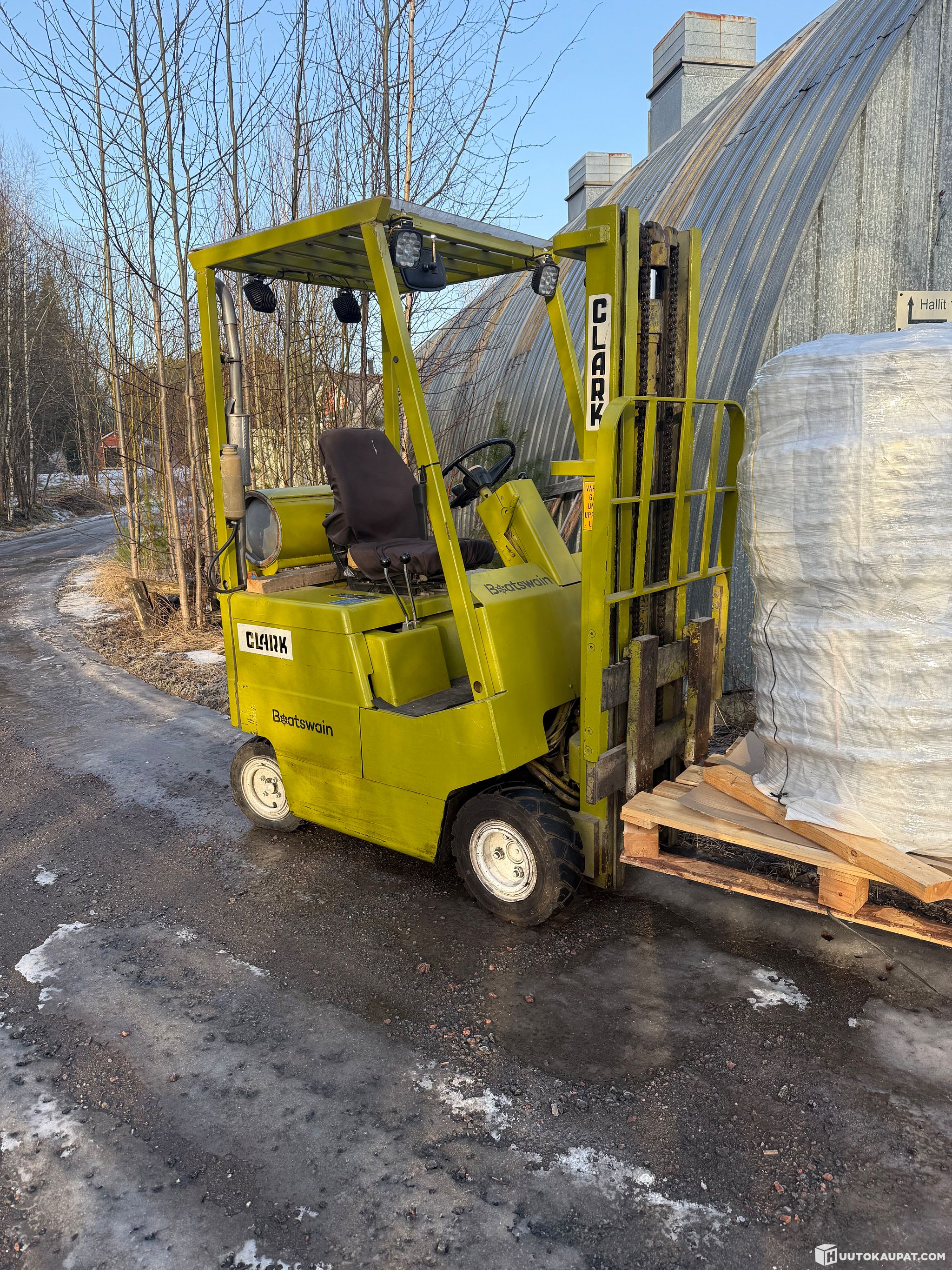 Handy gas forklift. Started well after winter. New evaporator fitted in autumn. Lifting capacity intact. Brakes a bit iffy, may need bleeding. New brake cylinder included as a precaution. Good work lights in every corner. Panorama (plexi) roof. Rear tyre lost pressure during winter. New front tyre.