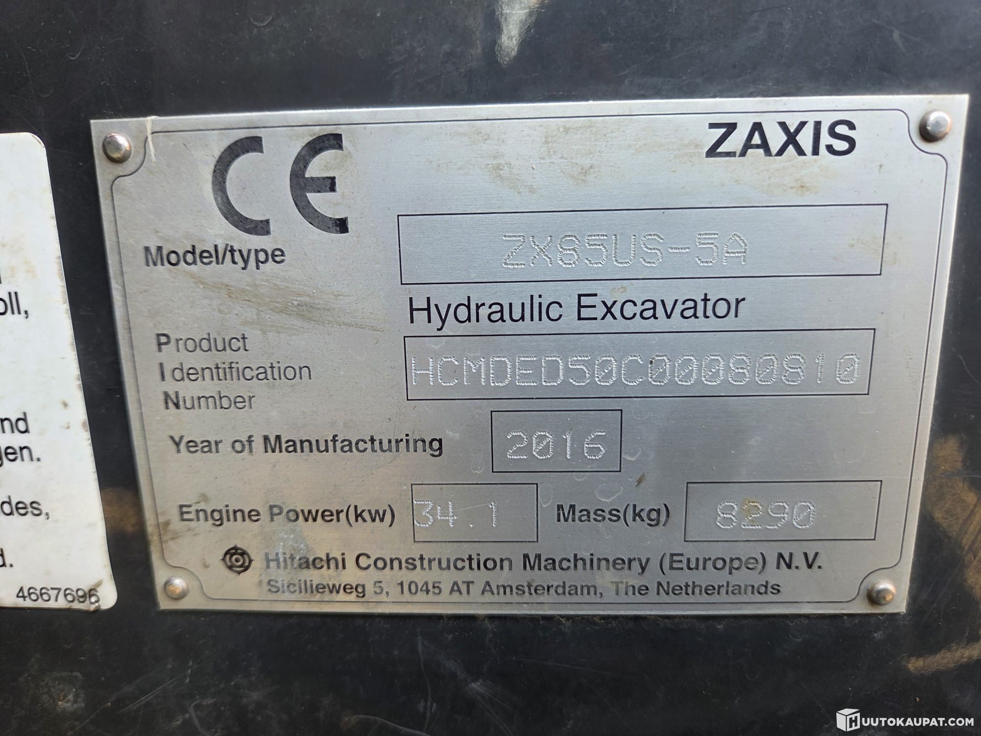 For sale: Hitachi ZX 85US-5A excavator as shown in the pictures