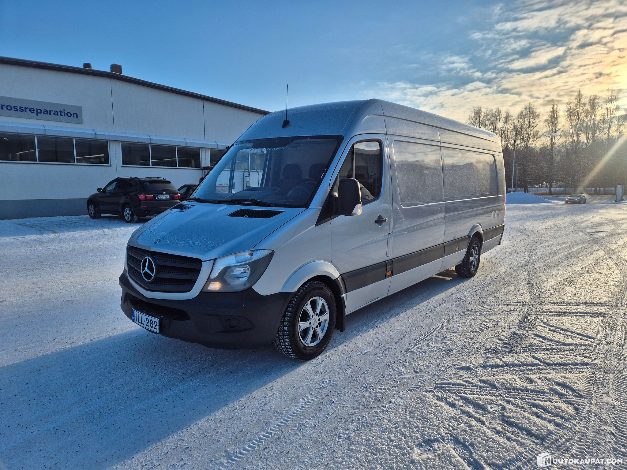 One-owner Sprinter with moderate mileage! VAT included. The van has been used by a transport company from new, so almost all mileage is road miles. Drives solid for its age. Gears engage well and there are no unusual noises from the drivetrain. Fitted with Webasto heater, air conditioning, fairly new winter tyres (studded), summer tyres in OK condition, etc. The body naturally shows signs of wear, but not as bad as many Sprinters of this age. The only faults I would note are a knock at the front when driving over manhole covers or other "sharp" edges, and the brake-pad warning light is on. The vehicle passed inspection despite the warning light, so it may be a broken wire or similar. The cargo area is boarded with plywood. There is a towbar whose step plates are a bit damaged, but it appears to be a Eurox towbar and replacement steps can be obtained separately. The vehicle currently has only one key; the previous owner promised to advise if the other key is found, but it is sold for now with one key. So if you treat small rust spots and straighten a couple of dents it's a smart vehicle! Welcome to view the van!