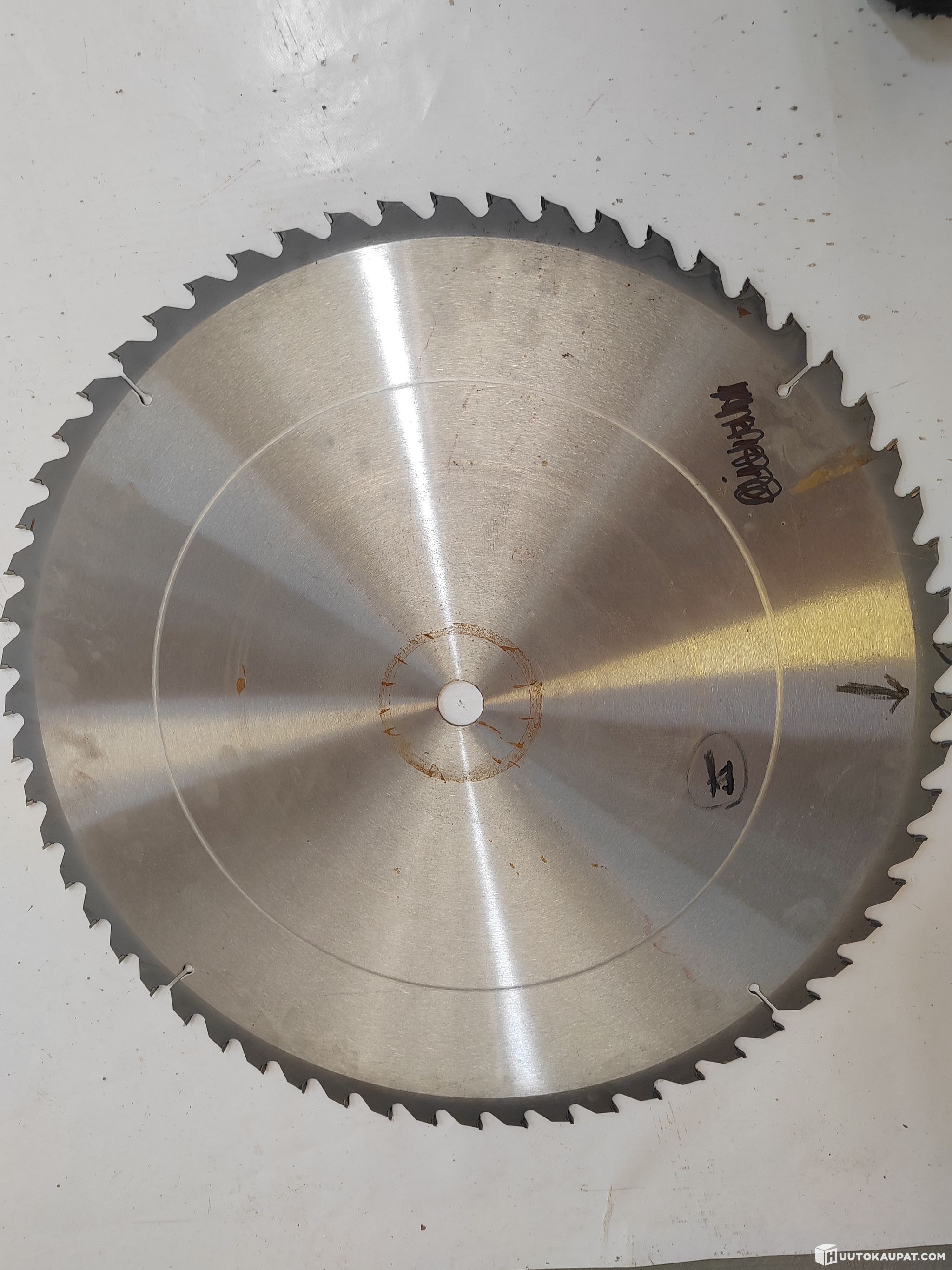 Carbide-tipped circular saw blade damaged in transit. Two teeth missing (see photo 2). Centre hole 35 mm.