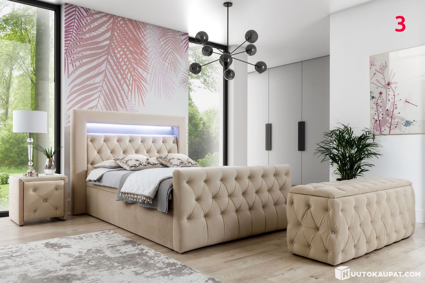 Now you can pre-order this luxurious US-style bed package, which includes a pocket-sprung main mattress, a topper, headboard, footboard and LED lighting – all at a special price!