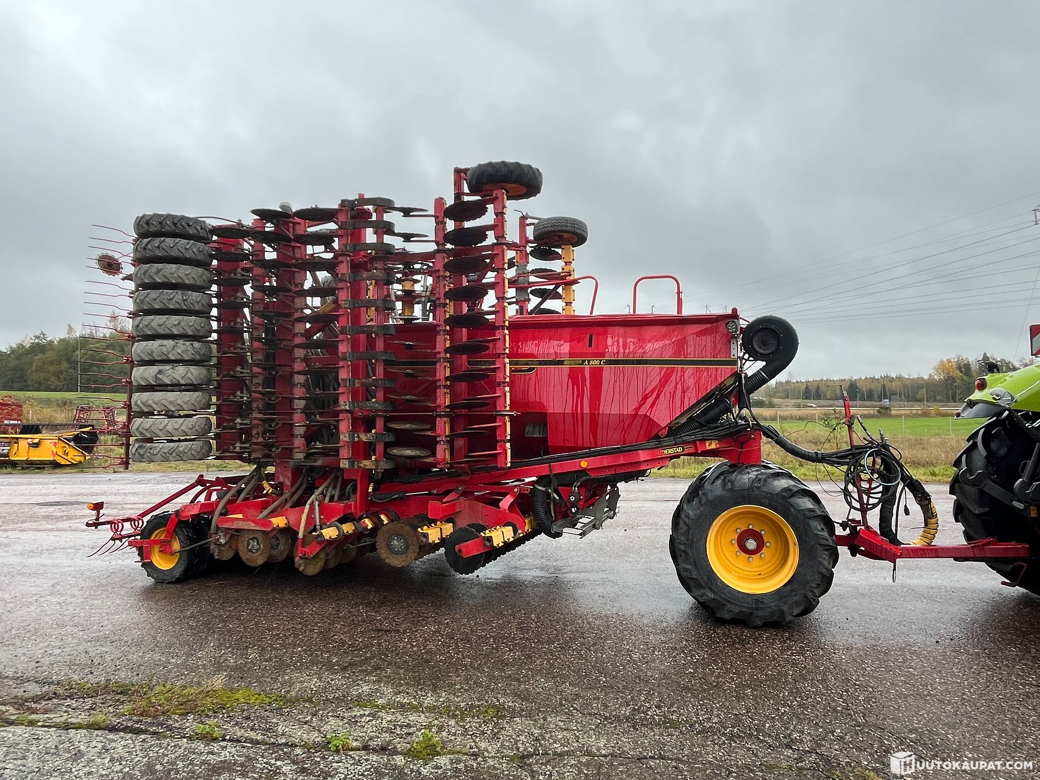 A wide 8-metre Rapid 800 C seed drill, ready for spring sowing.