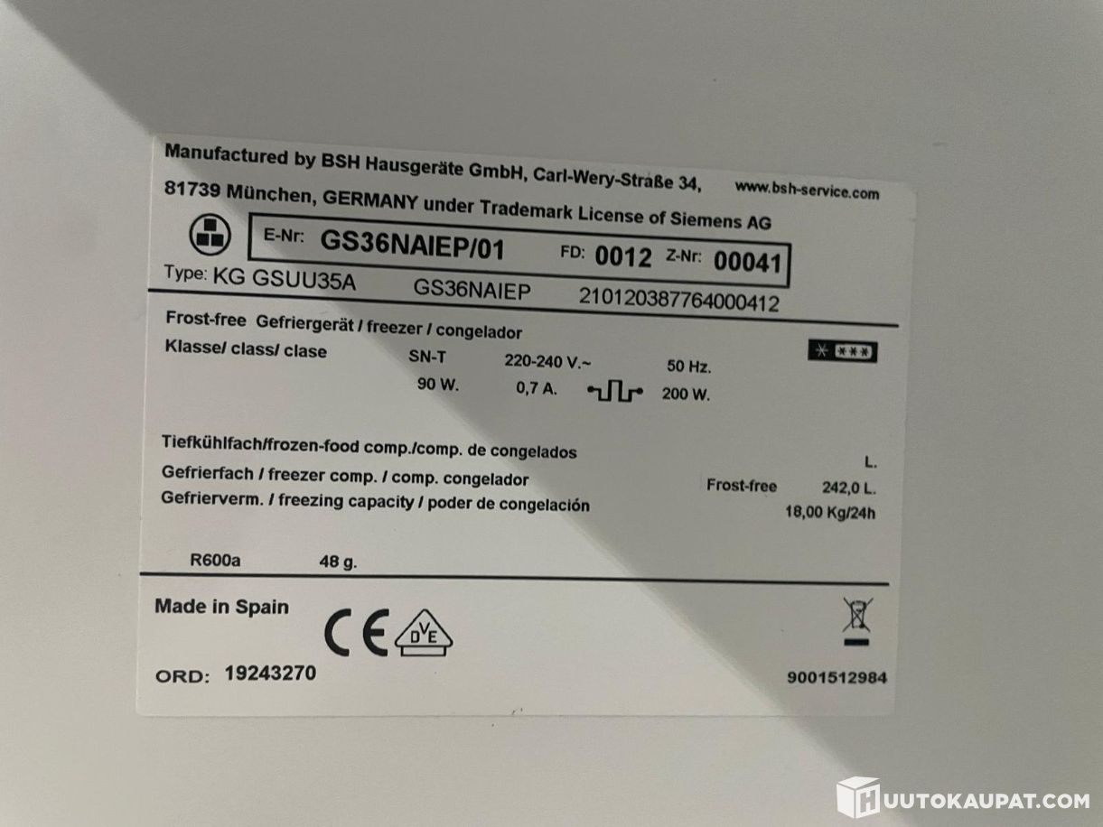 Upright freezer Siemens GS36NAIEP, used, Lahti