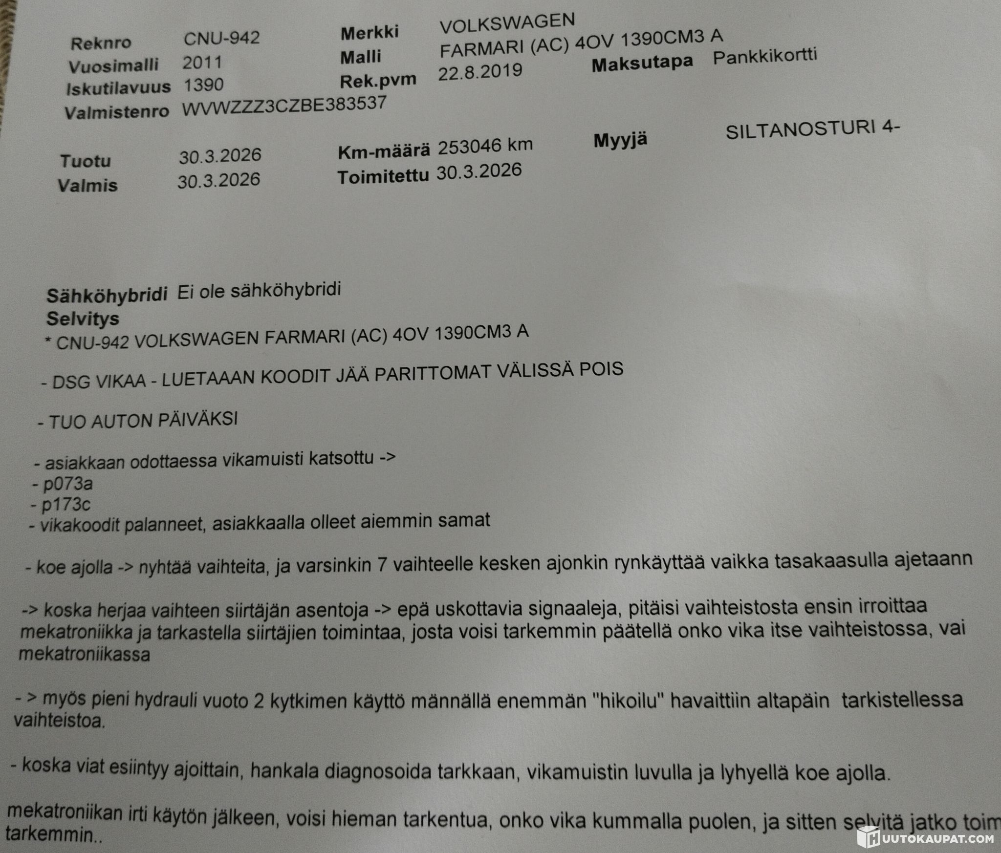 Lohjan Autokeskus / Tammisaaren Autokeskus / LA-auto Salo lists, Huutokaupat.com sells