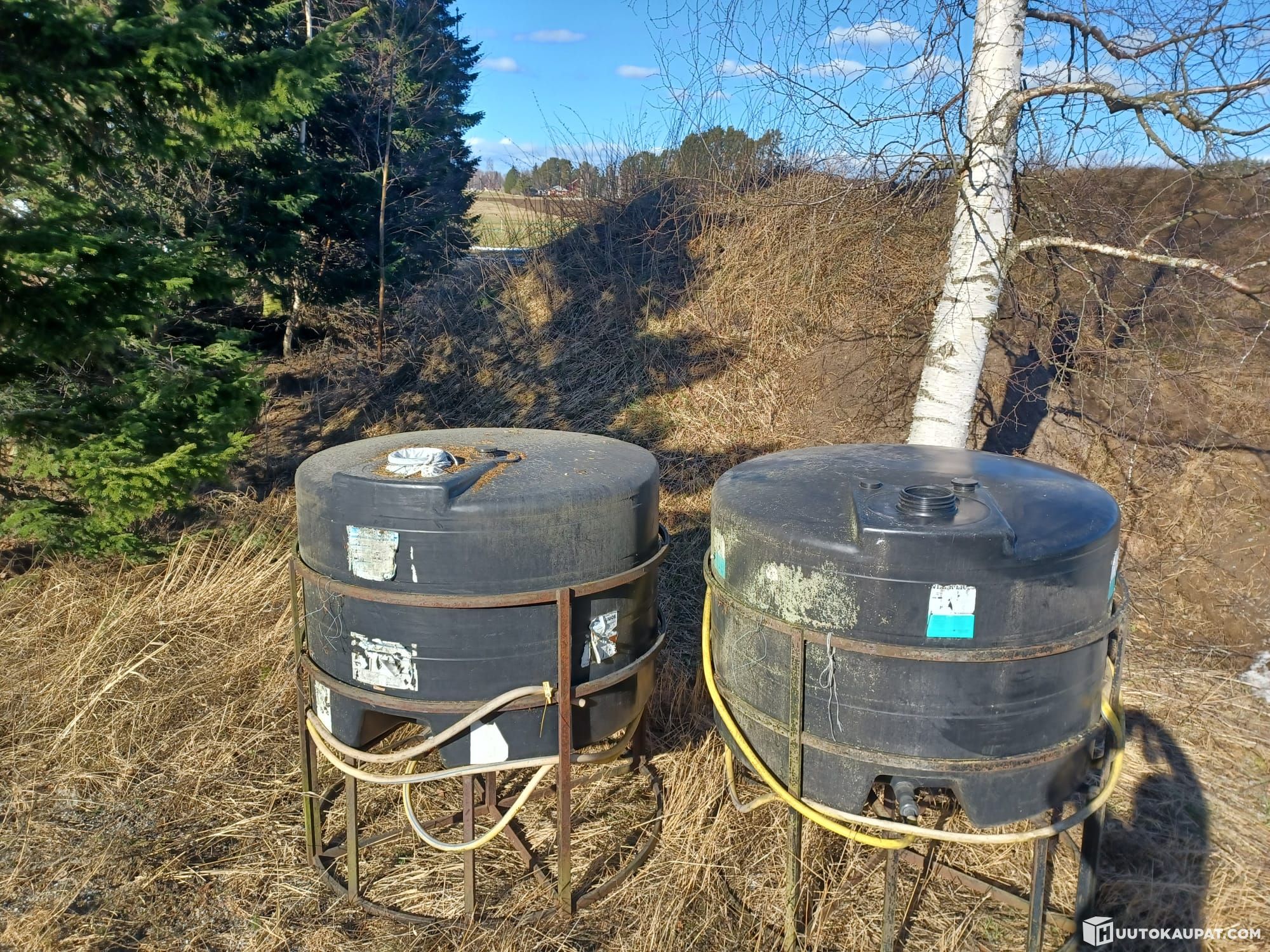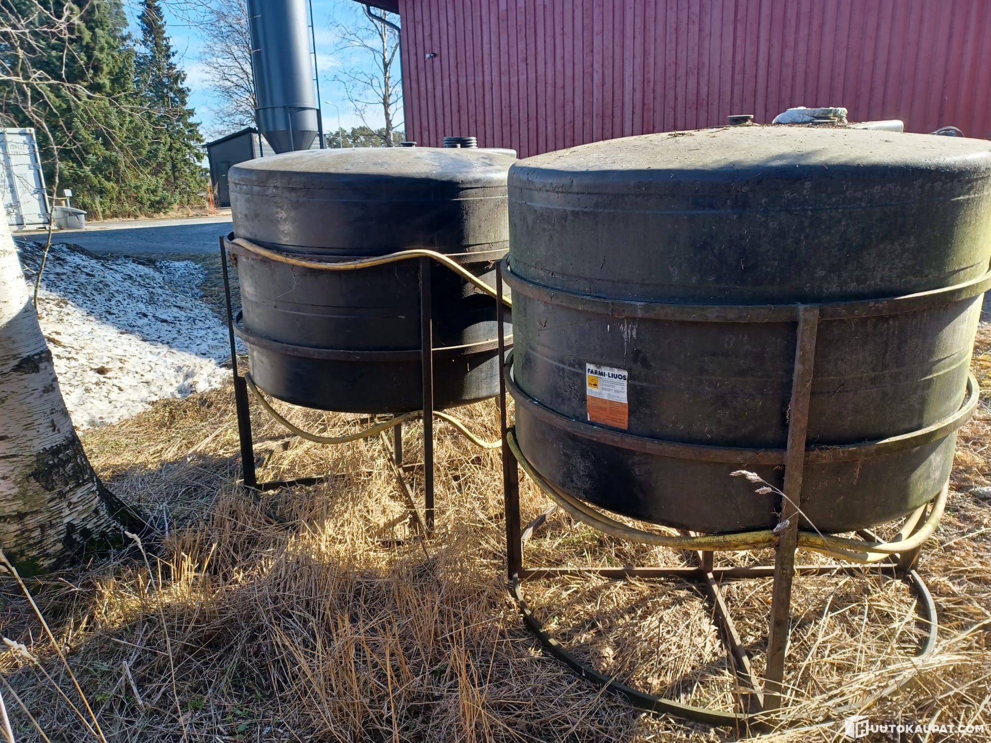 Two AIV/water tanks of approximately 1,800 litres with frames, which have been unused for a long time.