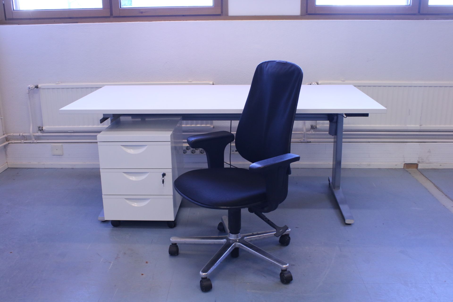 Signs of use on the surfaces and four height-adjustment parts are missing from the legs,