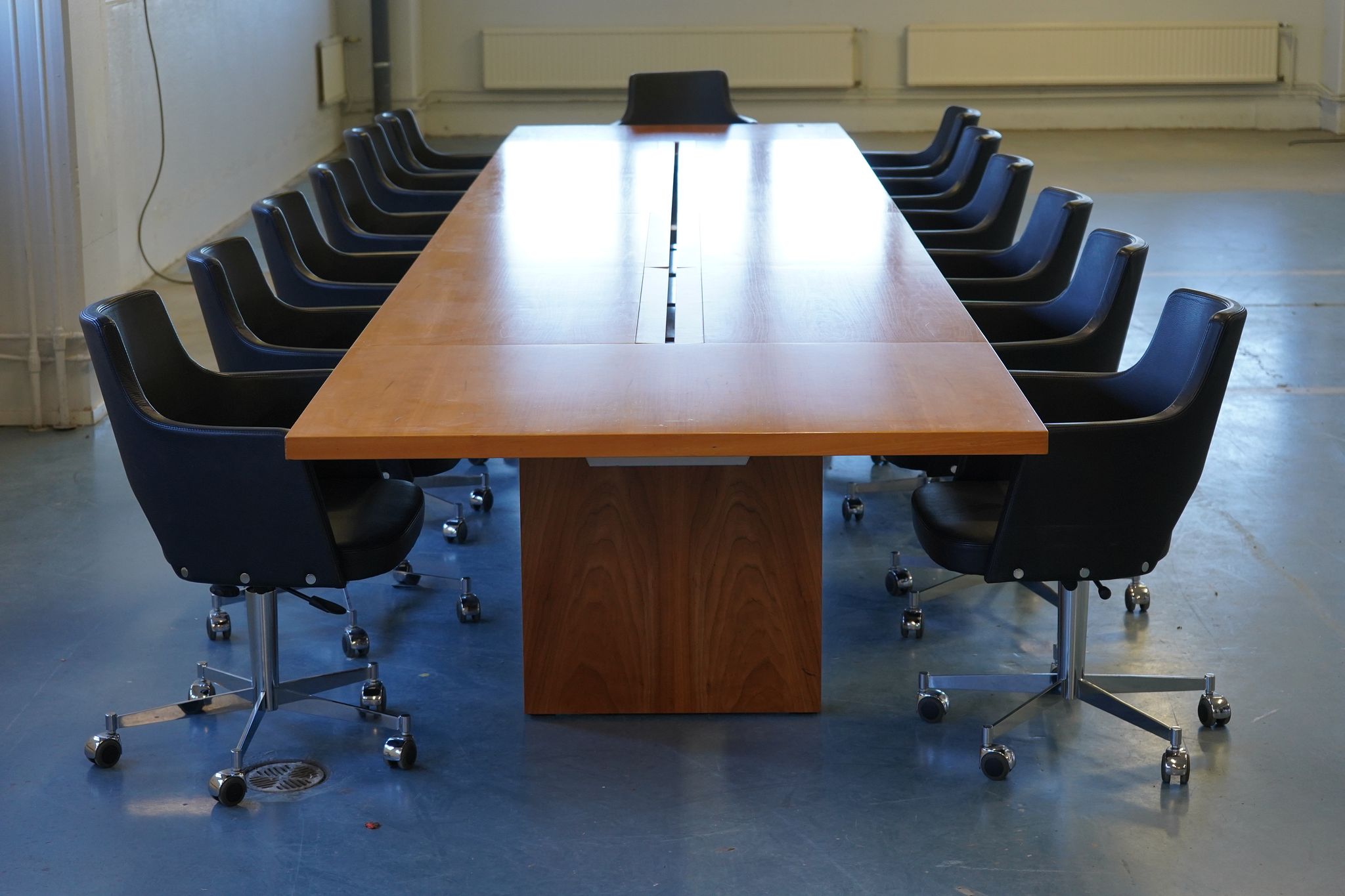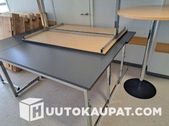 Used lecture tables, 8 units, tabletop colour dark grey, chrome-plated frame.