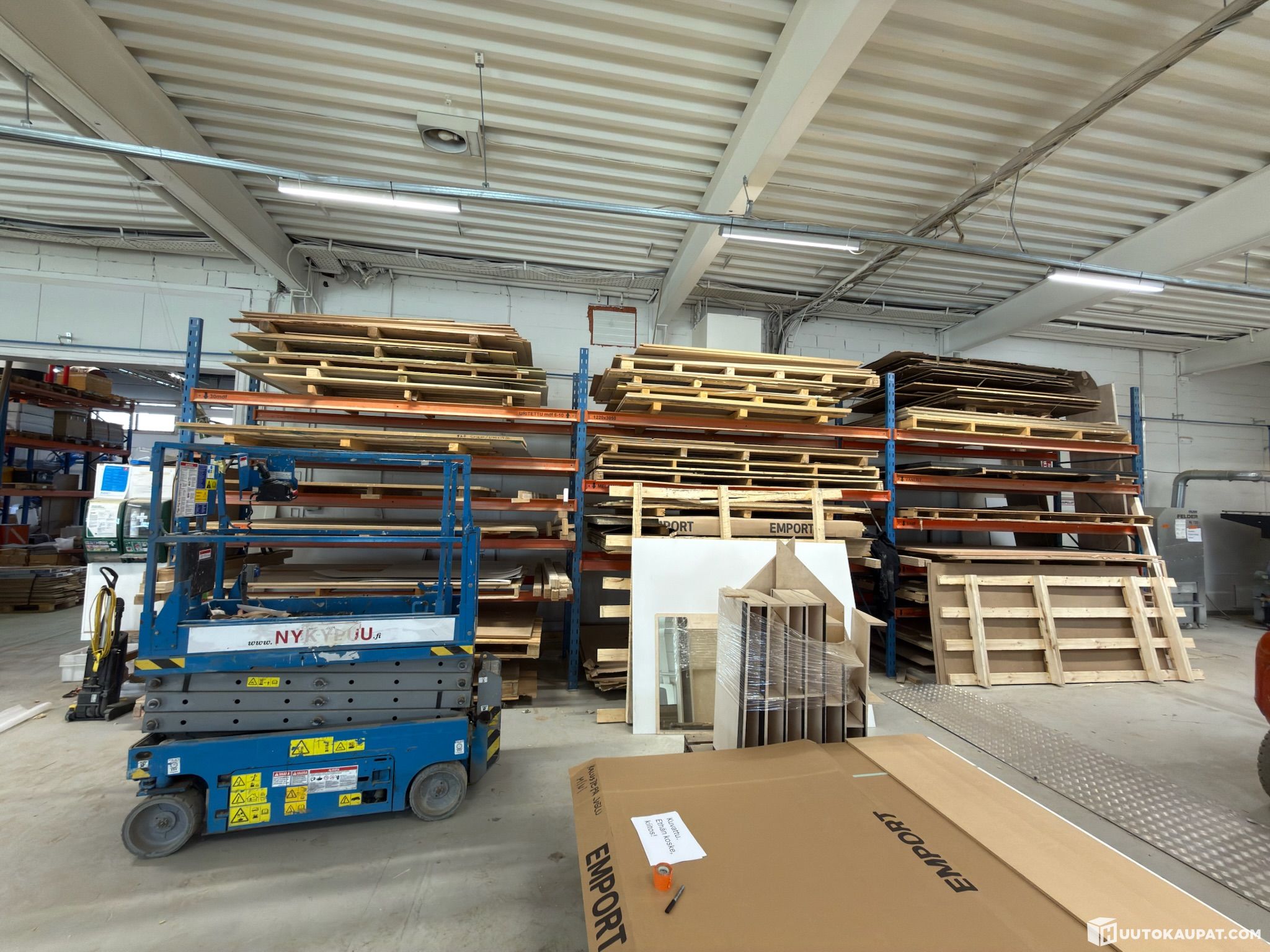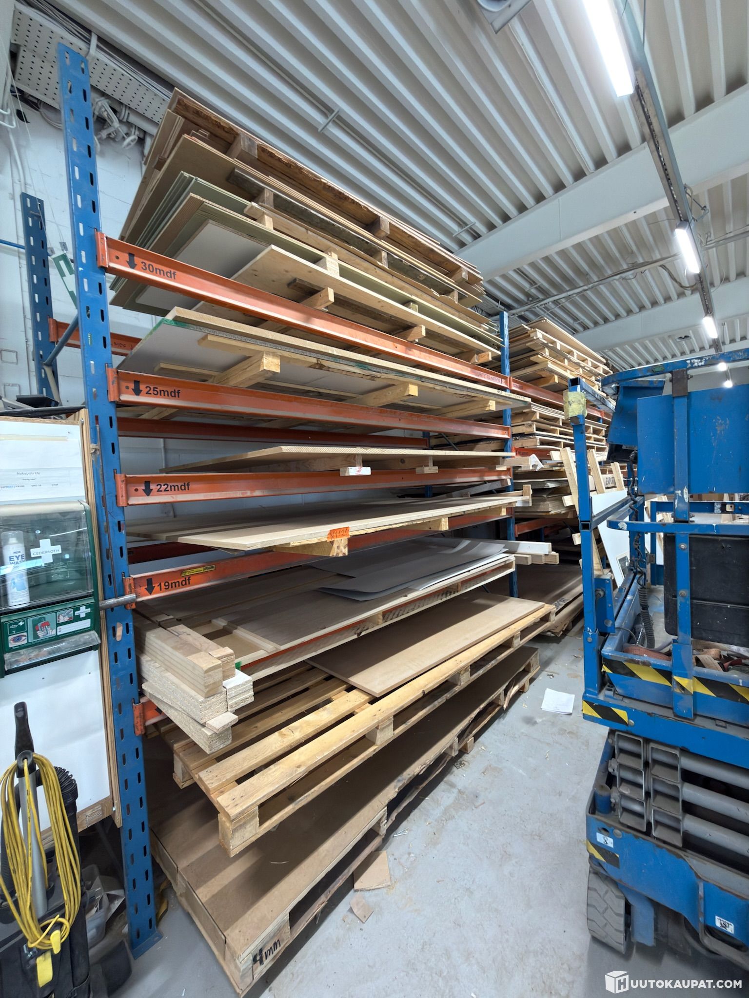 Items on shelving (long pallet boards, MDF, plywood sheets, etc.)