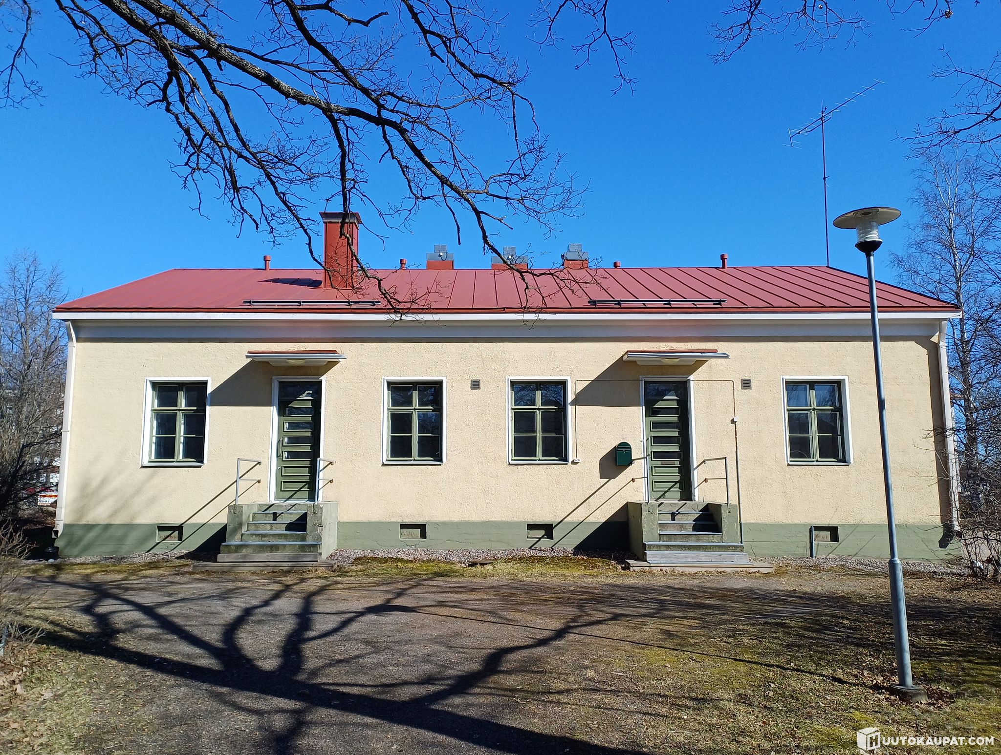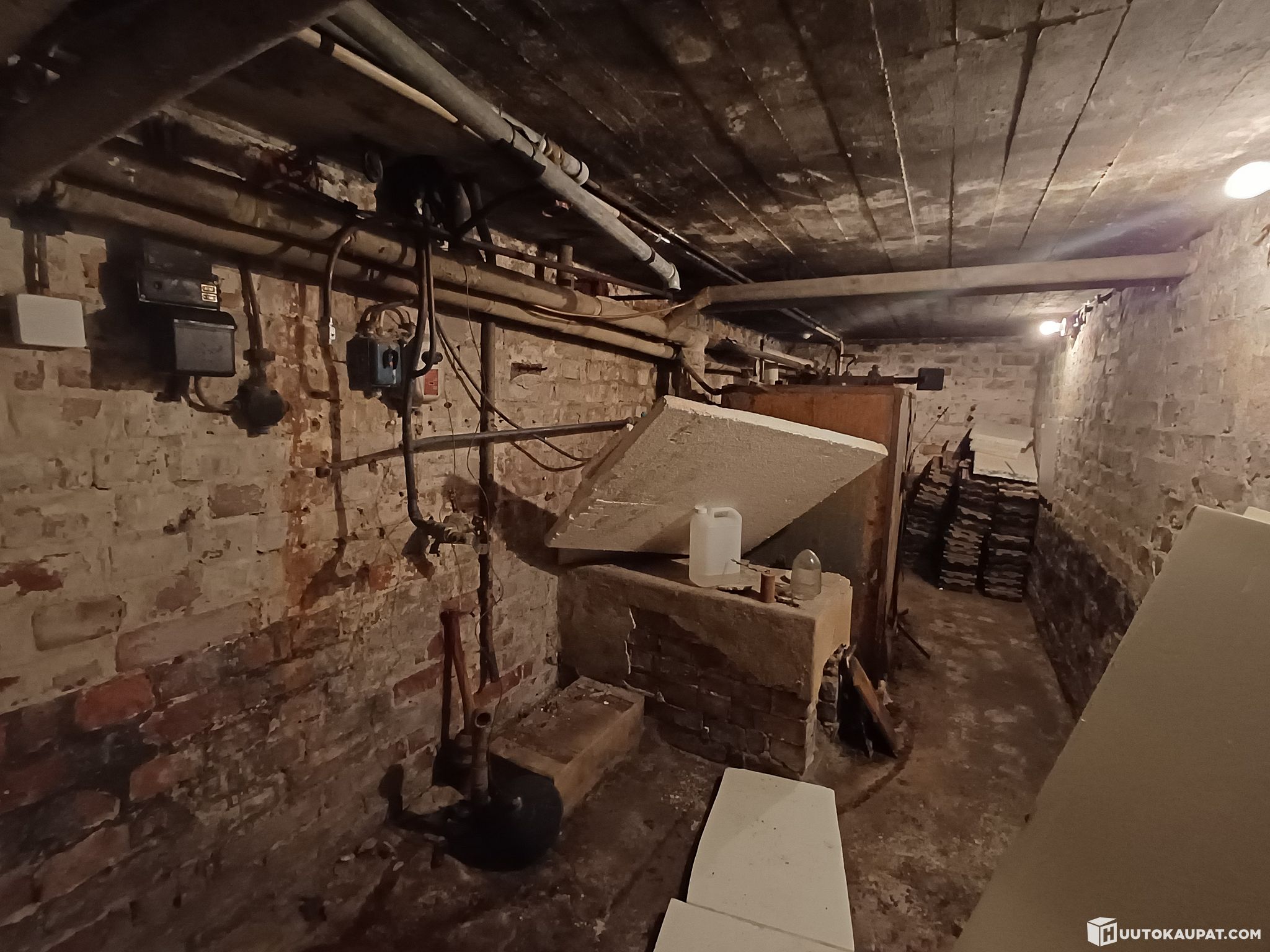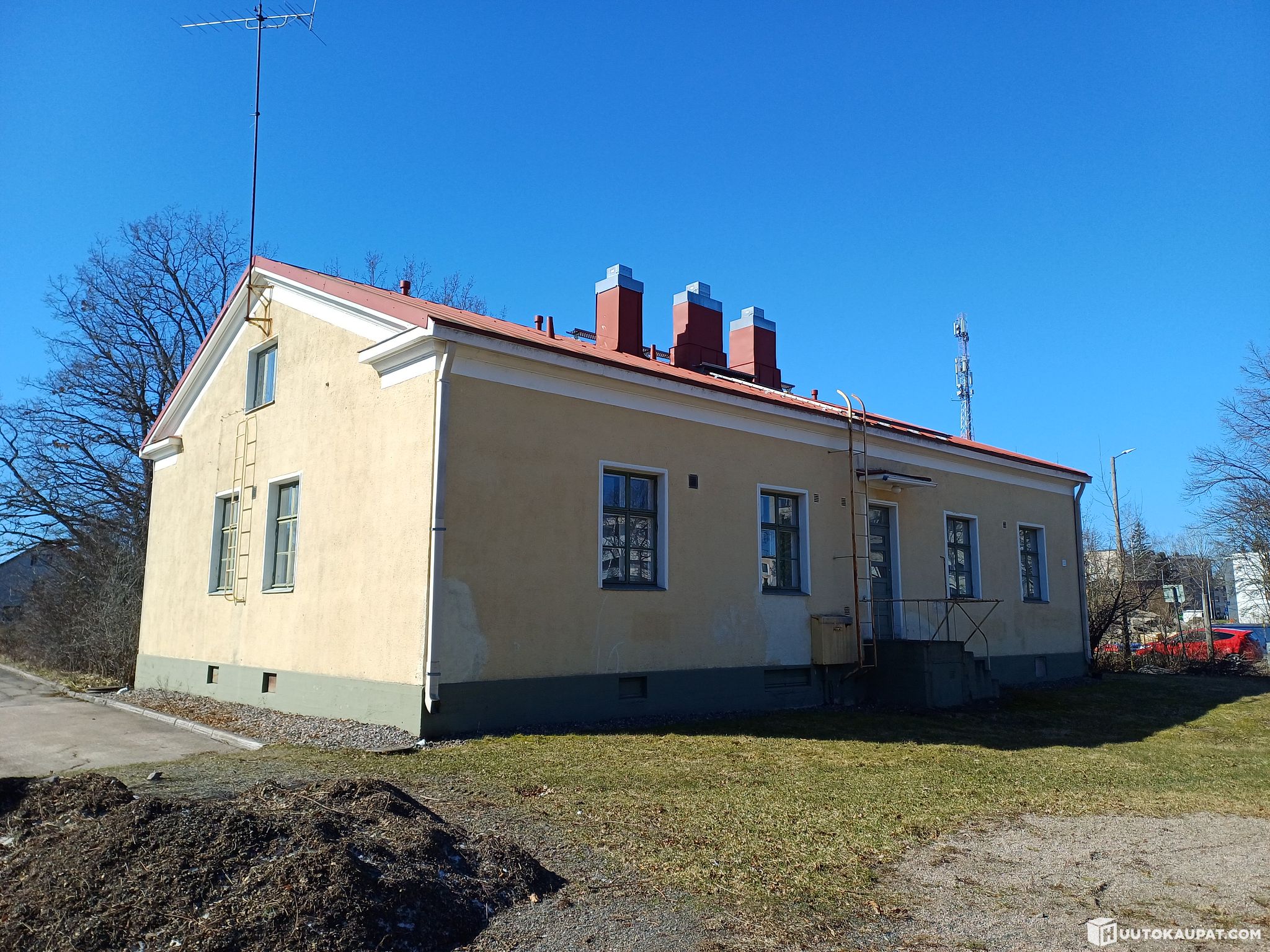 The property includes a protected building completed in 1936, originally built as an electricity works office and manager’s residence. The zoning allows combining residential and commercial uses under the same roof. The building is estimated to have approximately 220–270 m² of floor area, plus basement spaces. The premises most recently housed a child health clinic. The building was vacated and set to frost-protection heating in April 2019.
