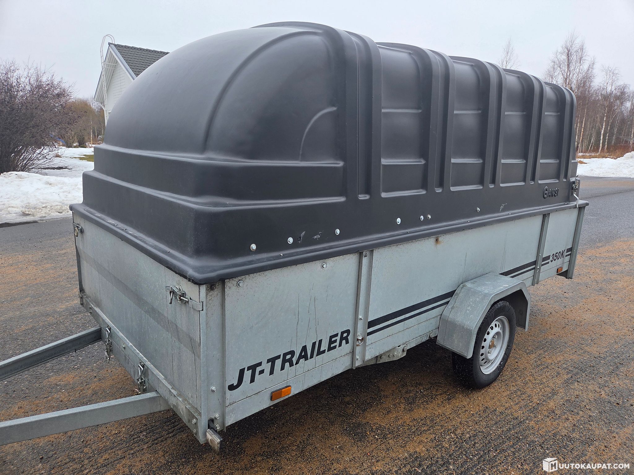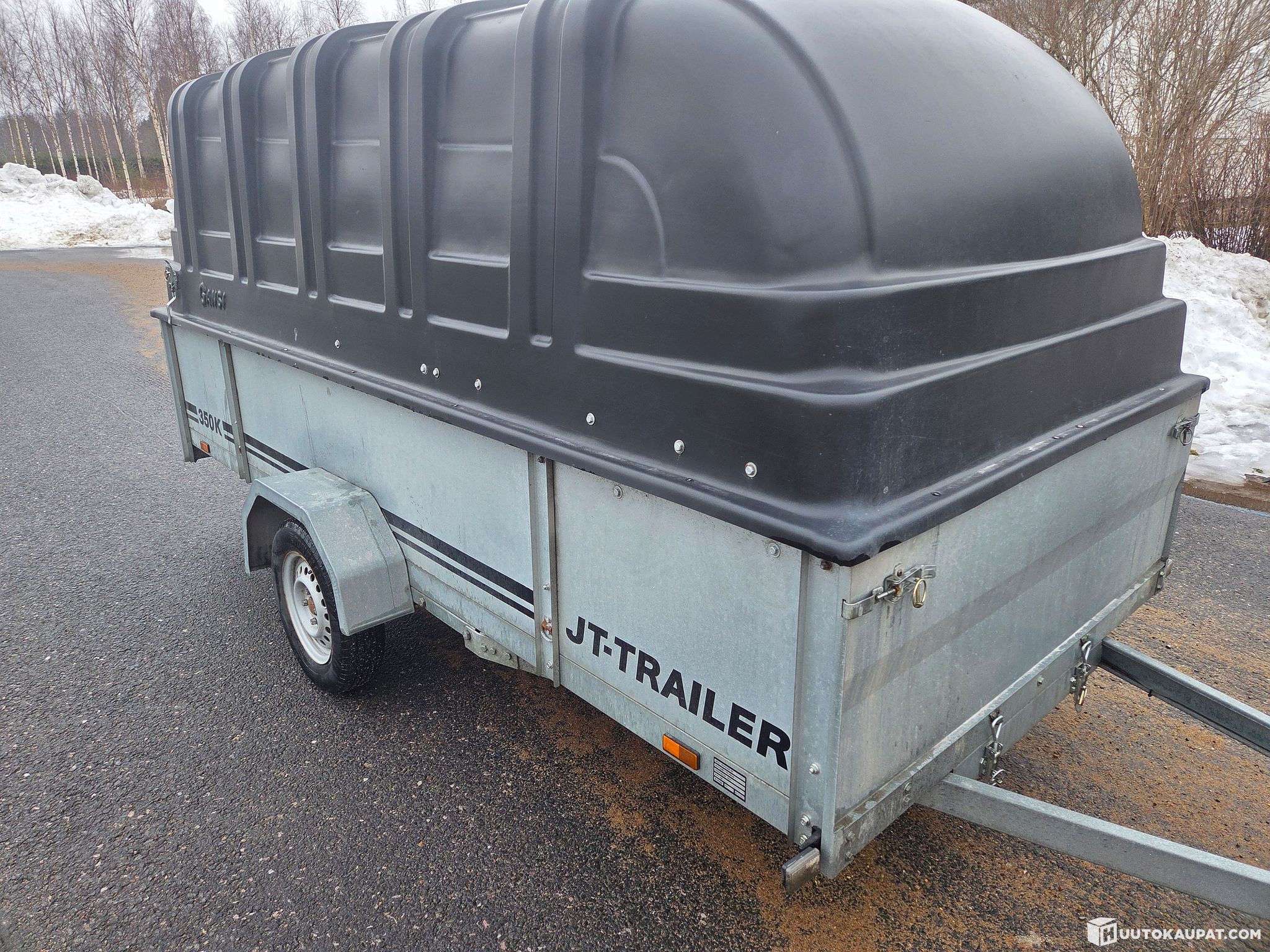 For sale: a functional and tidy JT-Trailer 350K covered trailer. An excellent trailer for many uses – suitable for removals, transporting tools, or general everyday driving.