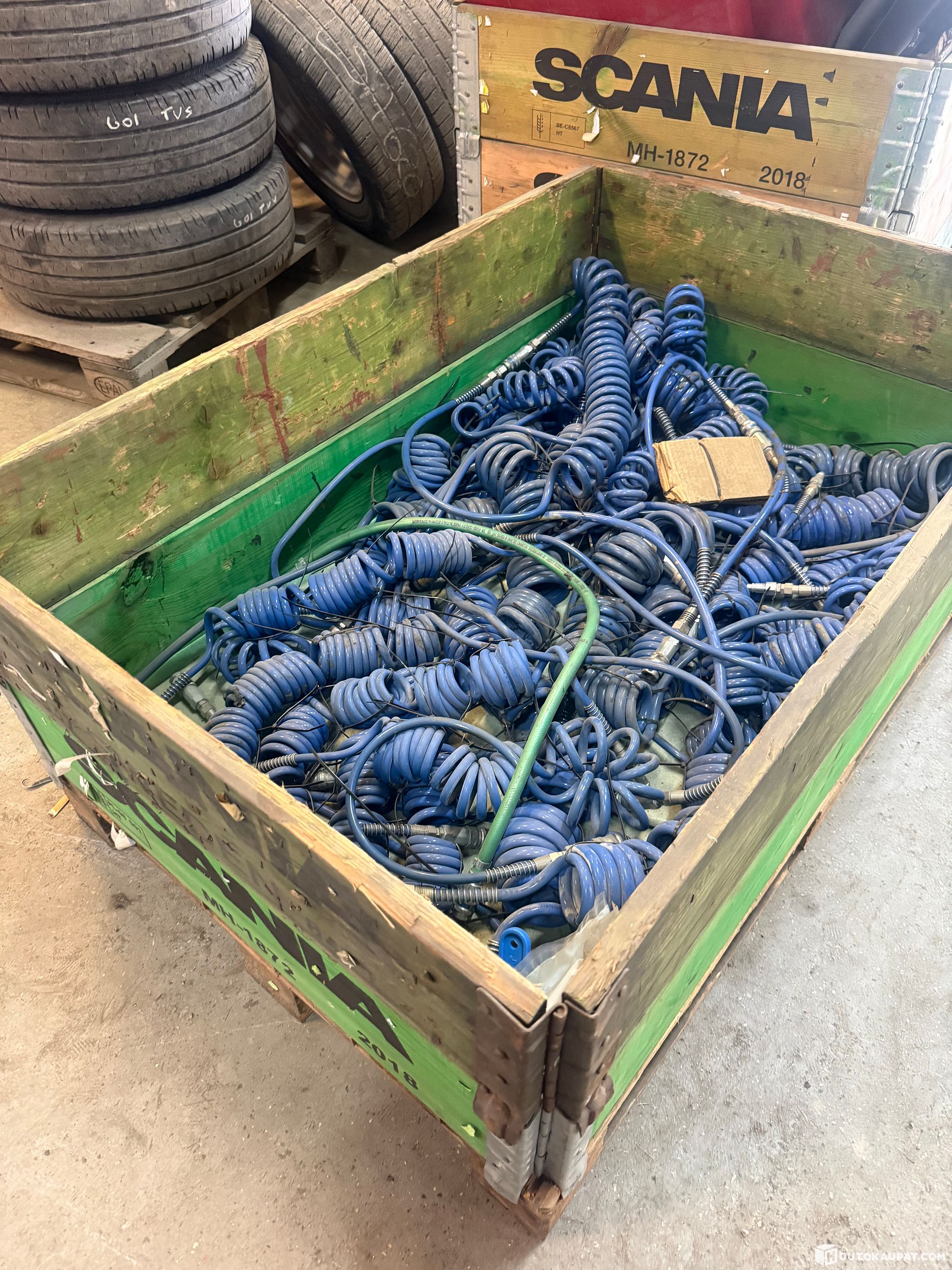 2 pallets of compressed air hoses. The hoses come from the Scania bus factory production lines. The number of hoses and fittings is unknown. Sold as a single lot.