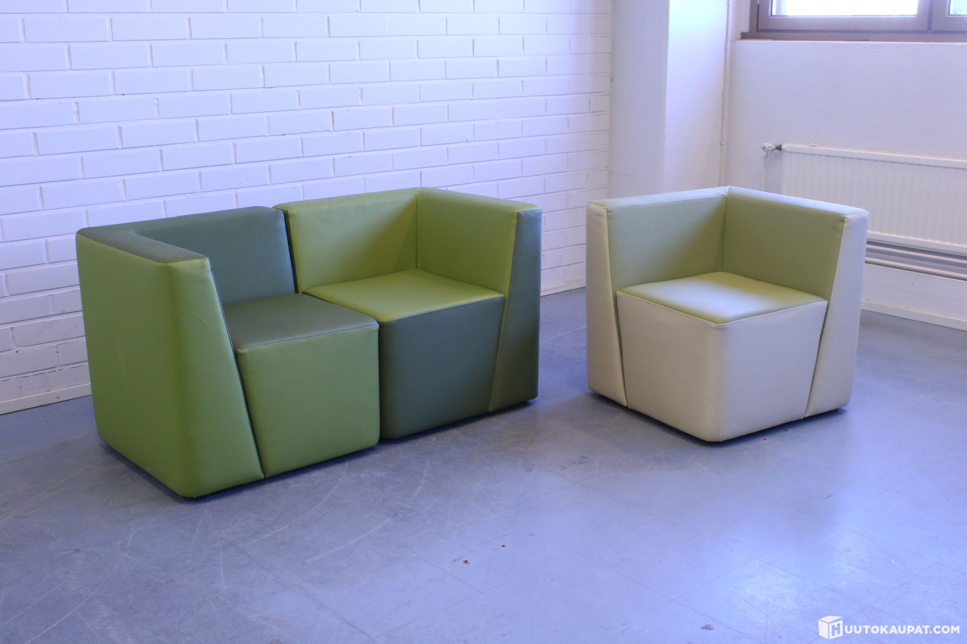 Three Martela Bit armchairs.