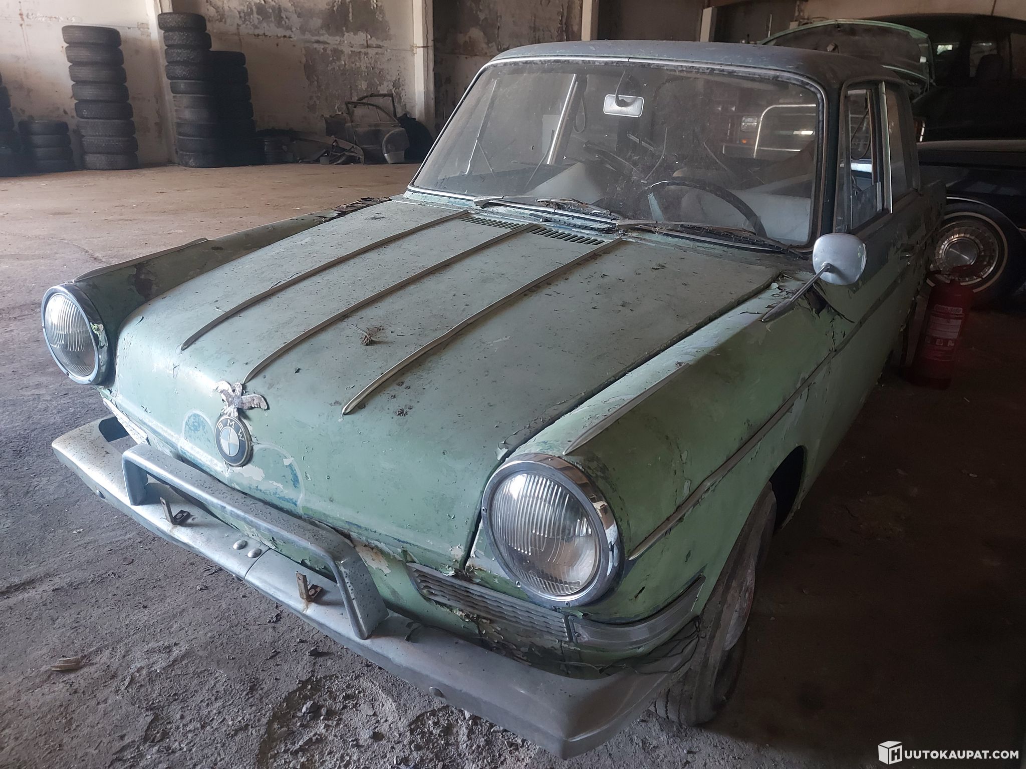 Stored in that garage since 2018. Previously unused for long periods. The engine is in place and all items inside the car are included in the sale. Two tyres do not hold air. No chassis number, not running and no registration papers. Essentially an old car to be used for spares.