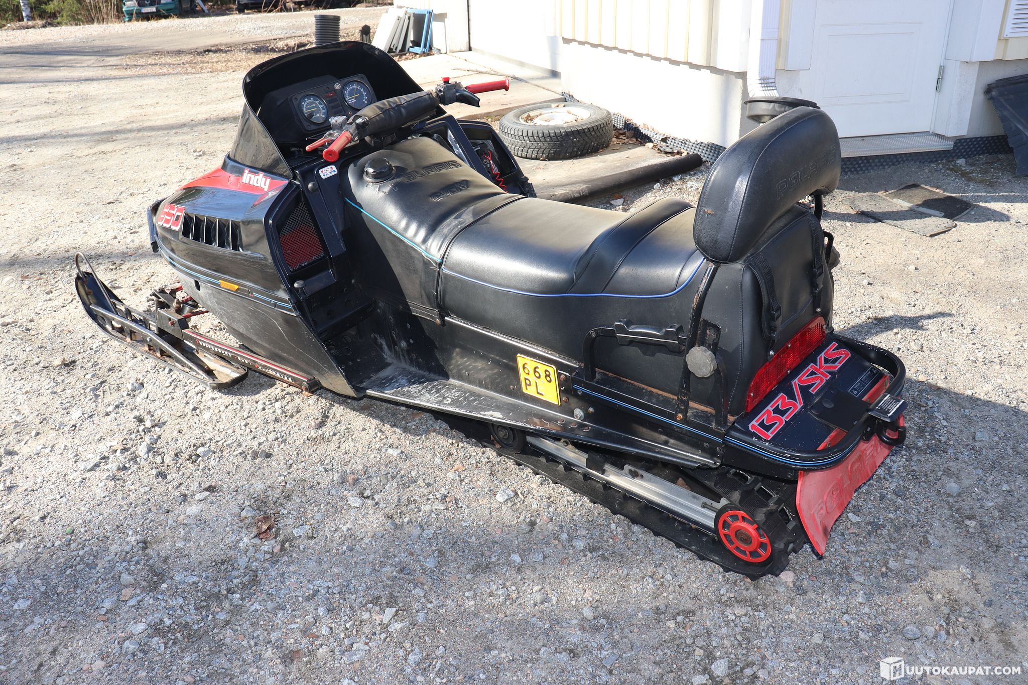 Snowmobile with a strong engine, a good track mat and a tow hitch — suitable for next winter's ice‑fishing trips. Better Fox front shocks fitted.
