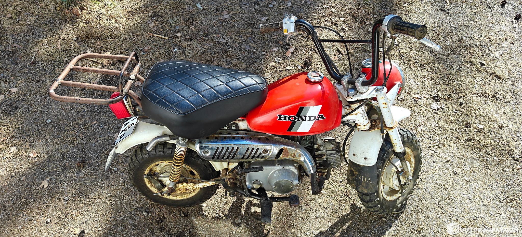 The Honda lettering and logo on the mudguard are worn.