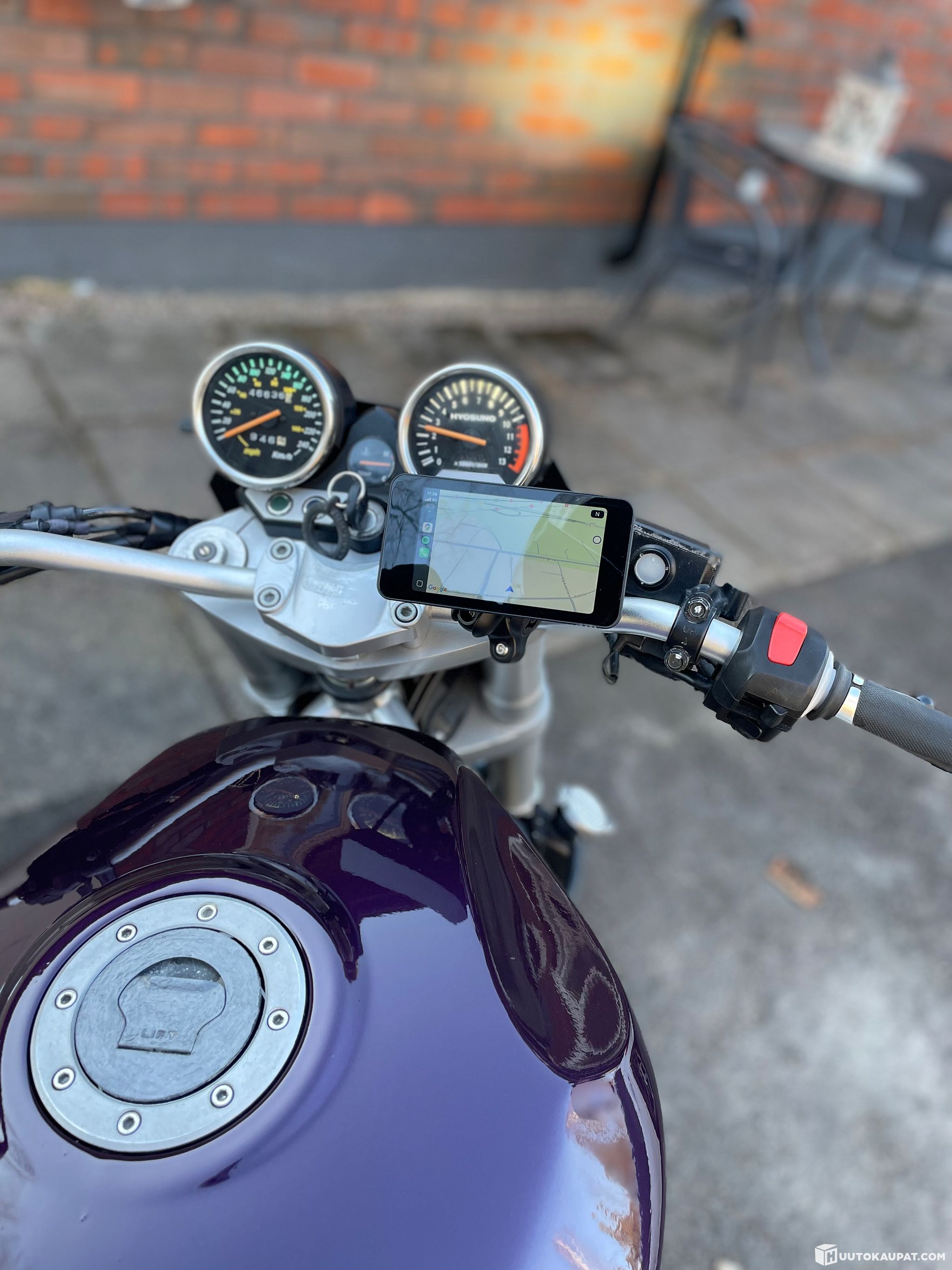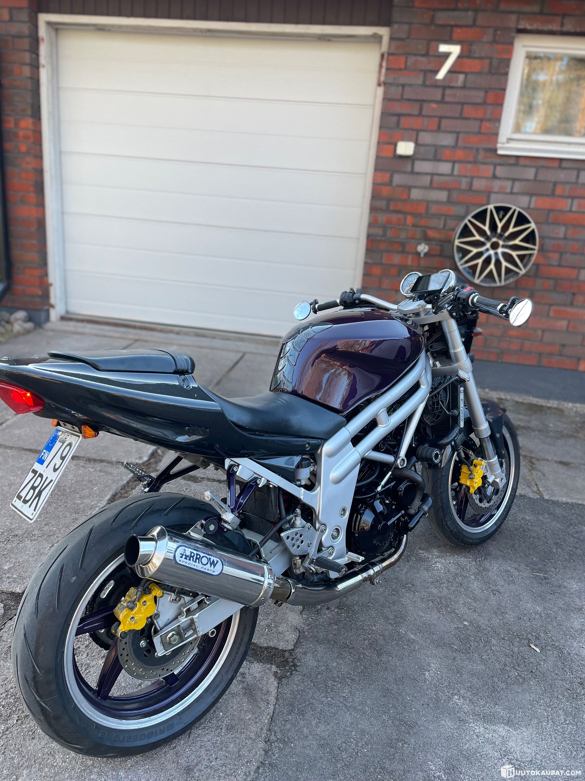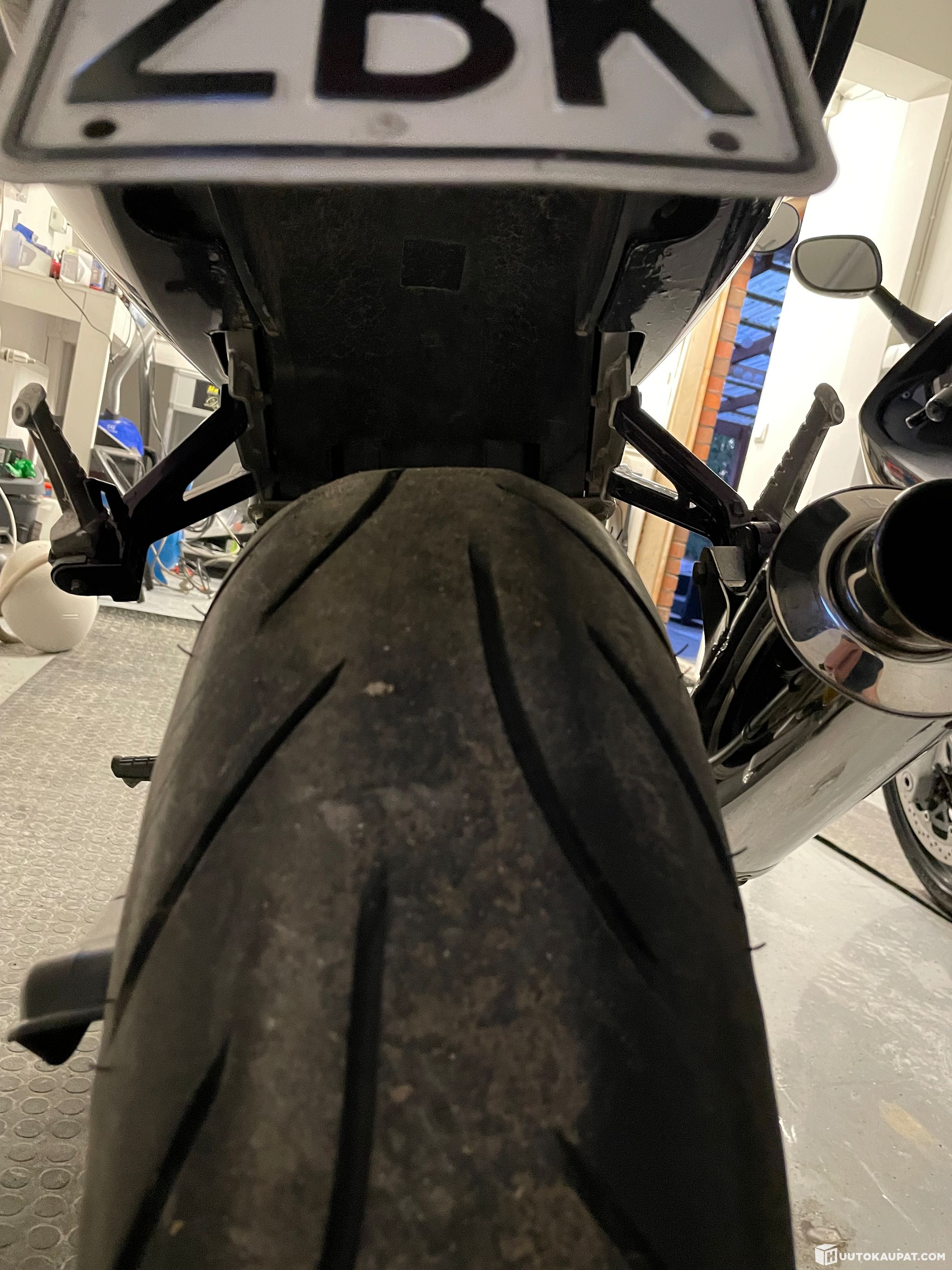 Lights have been upgraded and the exhaust modified. Tank, wheels and small parts have been freshly painted. Rear covers and the front mudguard are reasonably taped. Intact light-coloured paint underneath.