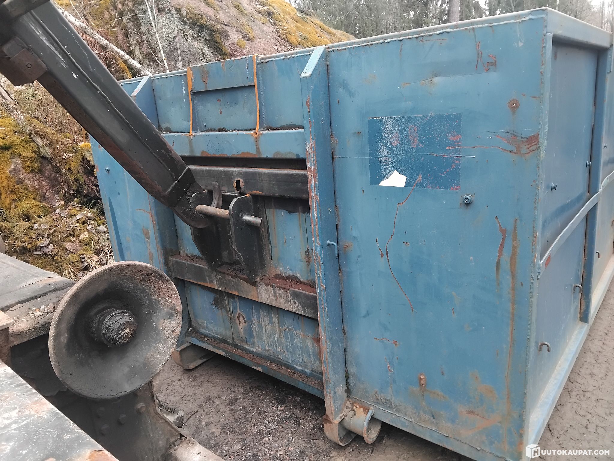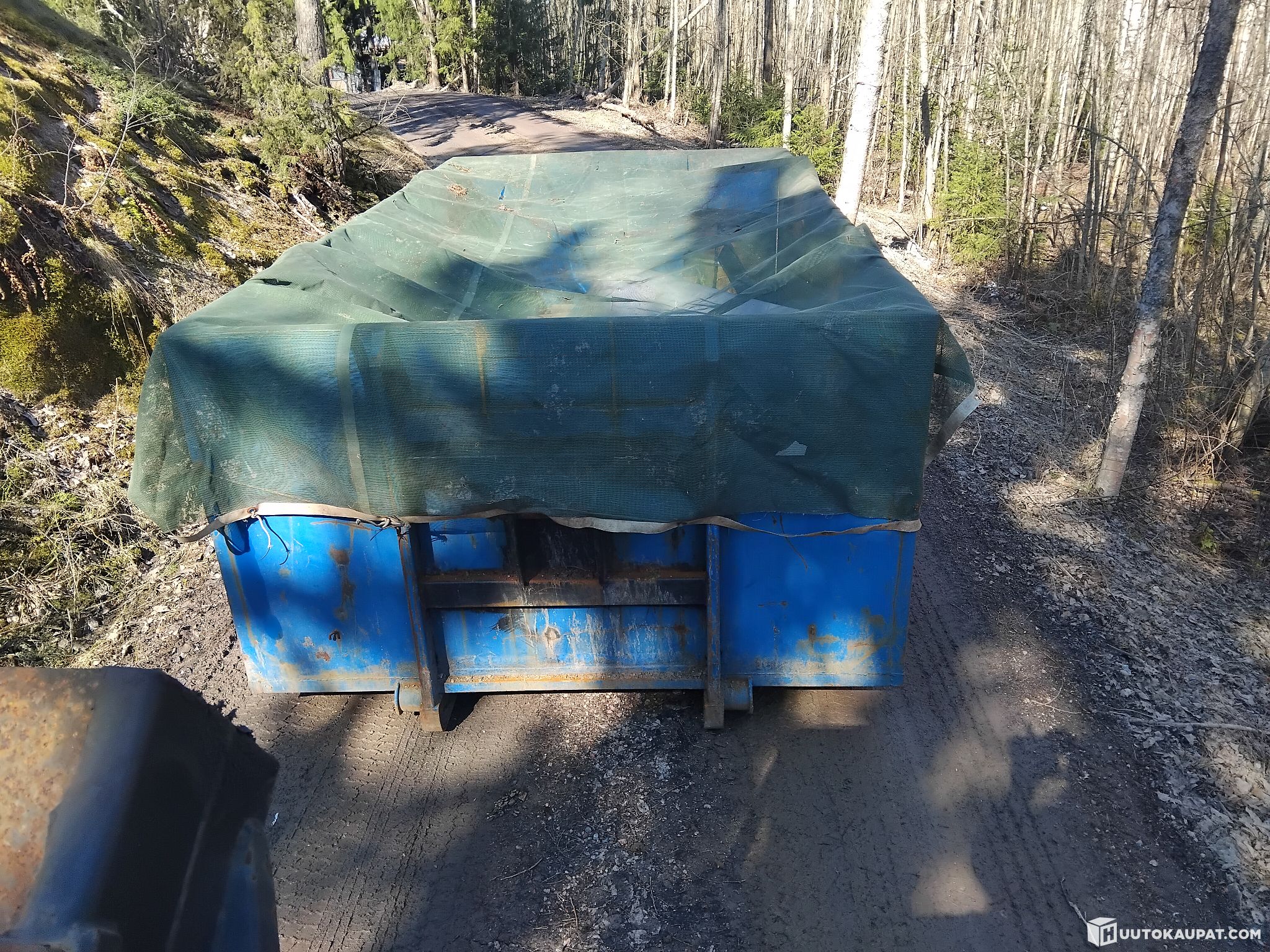 small hook-lift skip internal dimensions length 4.15 m width 2.24 m height 1.26 m. Items/waste on the skip and the load net are included with the skip; the buyer will take them away.