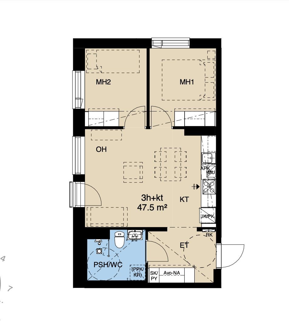 For sale: a nearly new 4th-floor (of 6) three-room flat, suitable for owner-occupation or investment, in the privately owned Asunto Oy Vantaan Martinlaakson Pokaali!