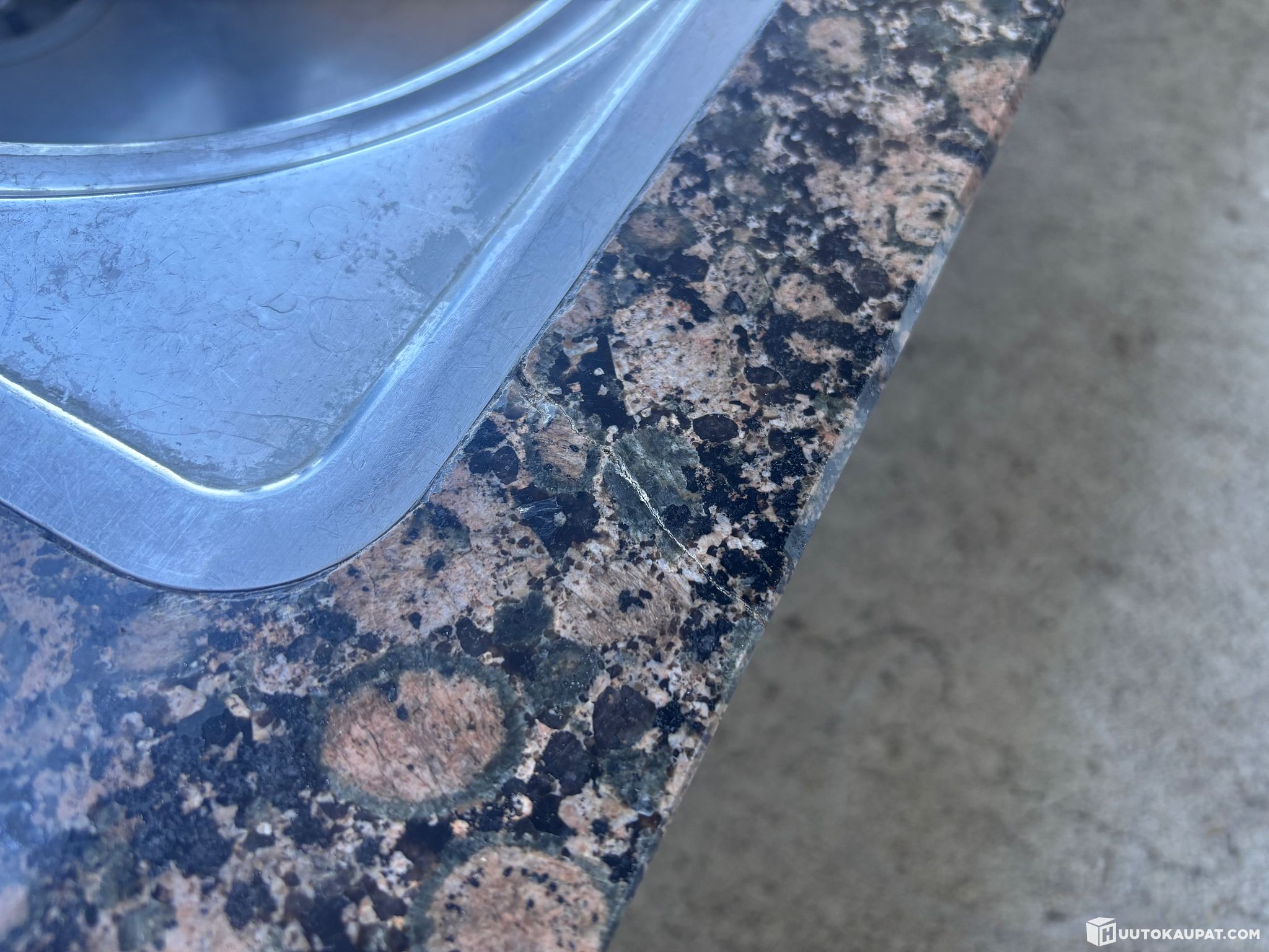 Granite worktop (dimensions in the photos) with a double sink and an Oras tap. There is a crack at the front — see photo.
