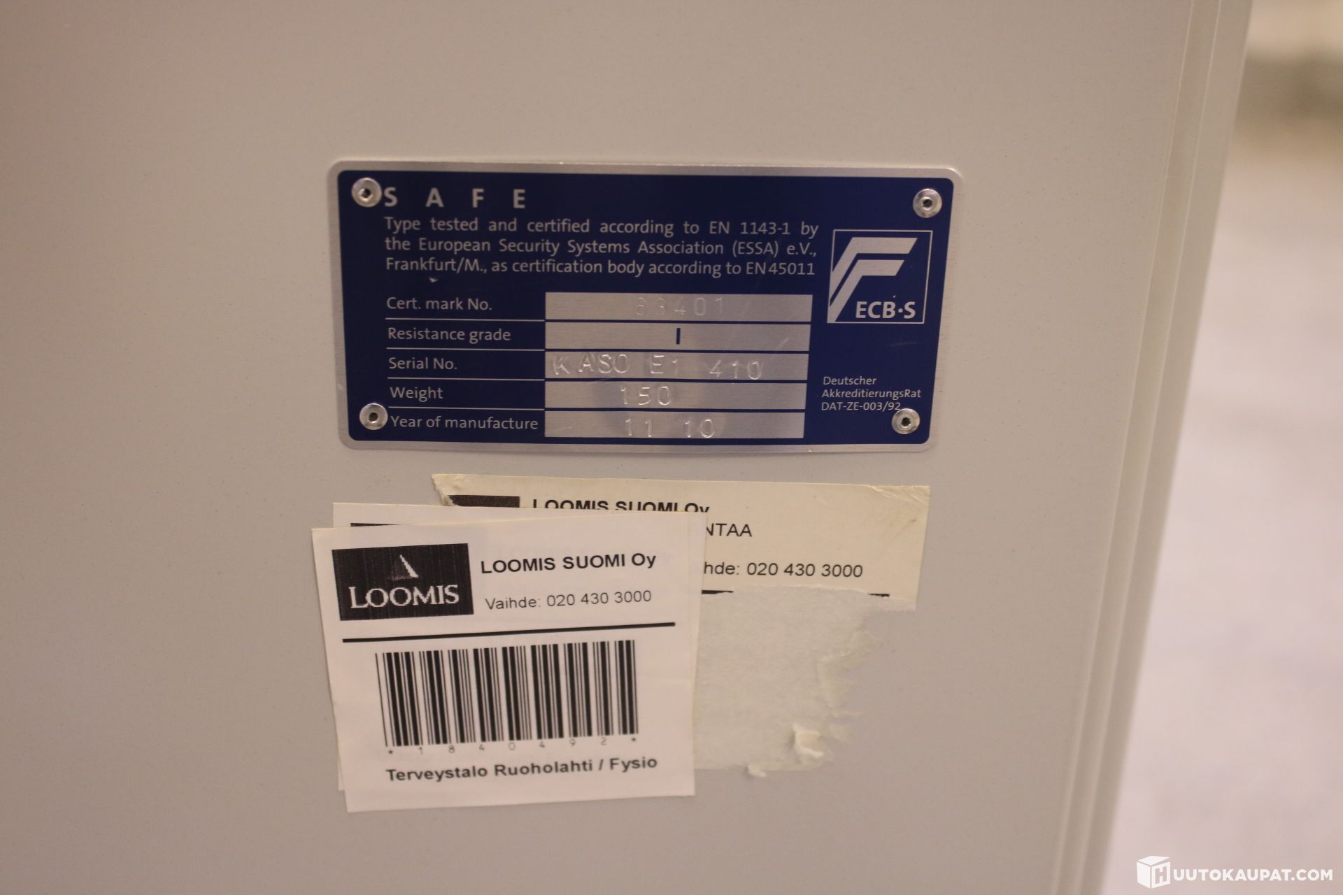 The safe has an E1 burglary rating (EN 1143-1)