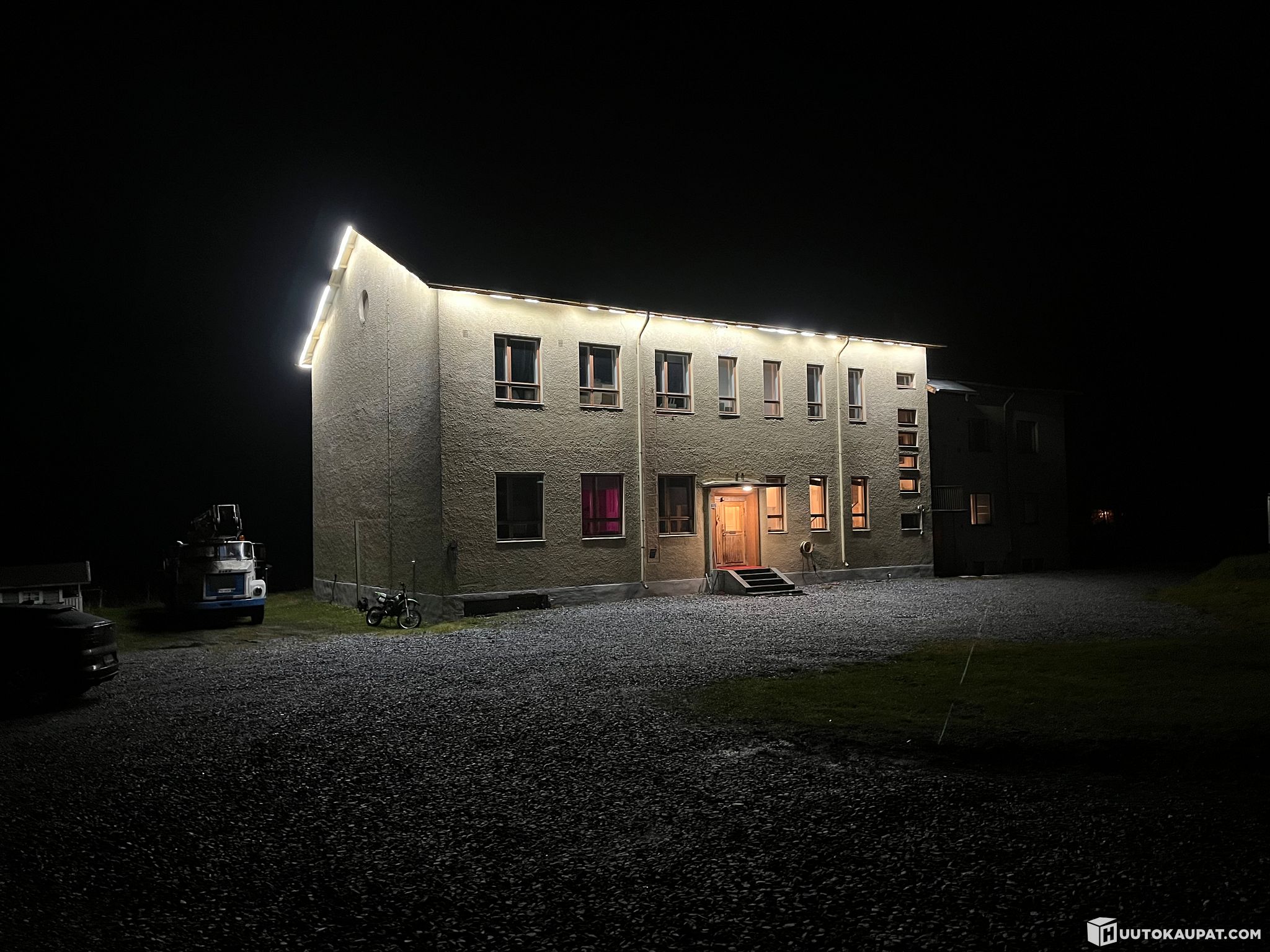 The building is divided into two parts; the school side (430 m²) was converted for residential use in 2003. The rental-apartment side has its own stairwell and entrance.