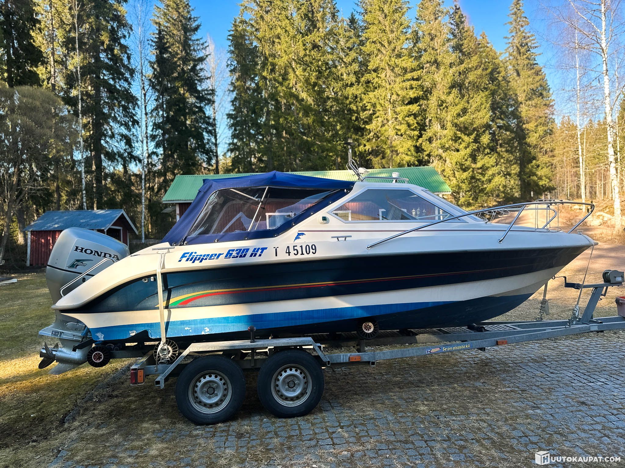 Large, high-quality Flipper 630HT motorboat for sale by auction.