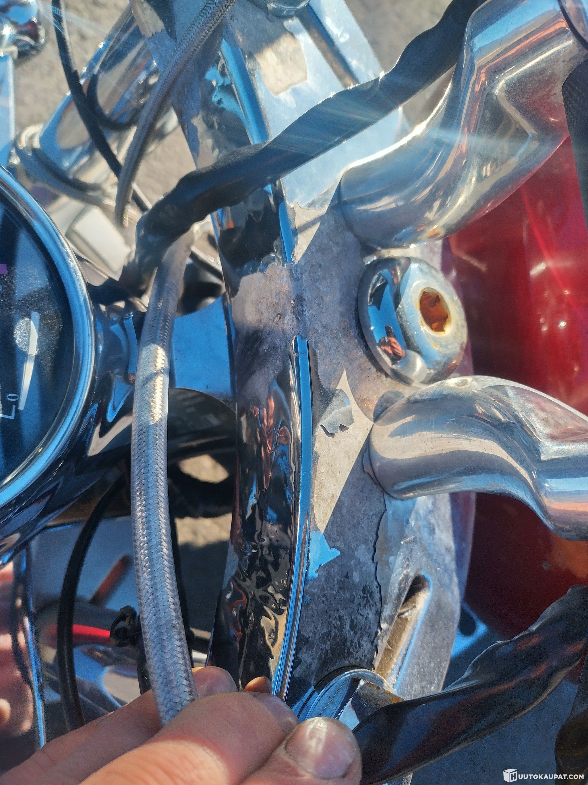 Minor signs of age. Some chrome is peeling from the T-pieces. A good, easy-going ride.