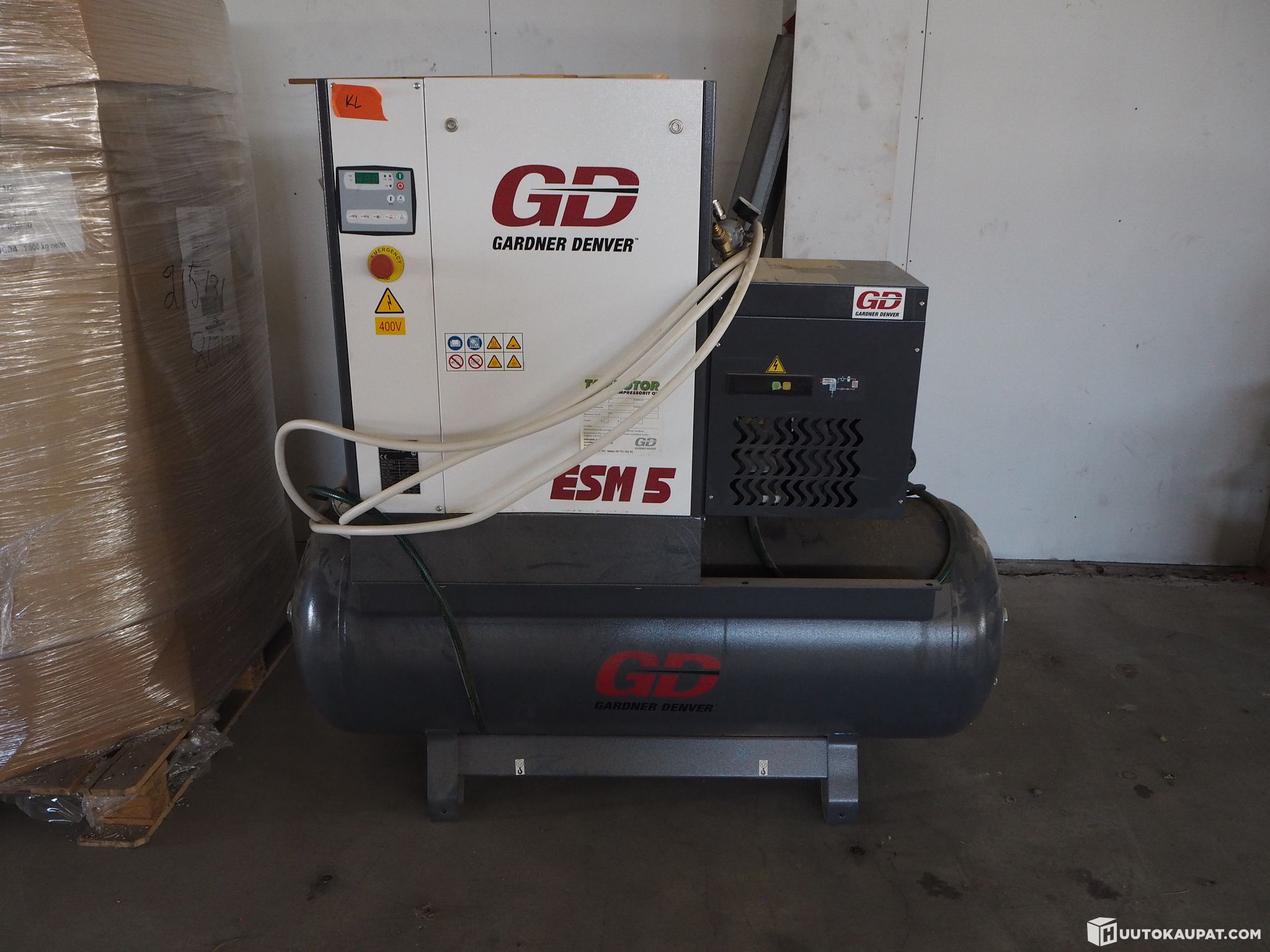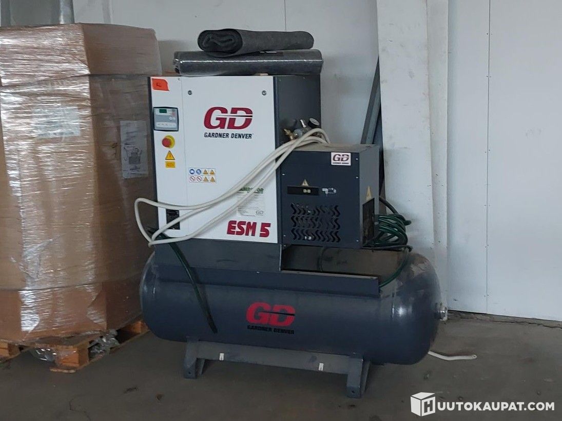 For sale: Gardner Denver ESM 5 air compressor. The machine was used a few hours per week from 2019 to 2022 and has since been stored indoors in a dry, warm warehouse awaiting resumption or start of operations.
