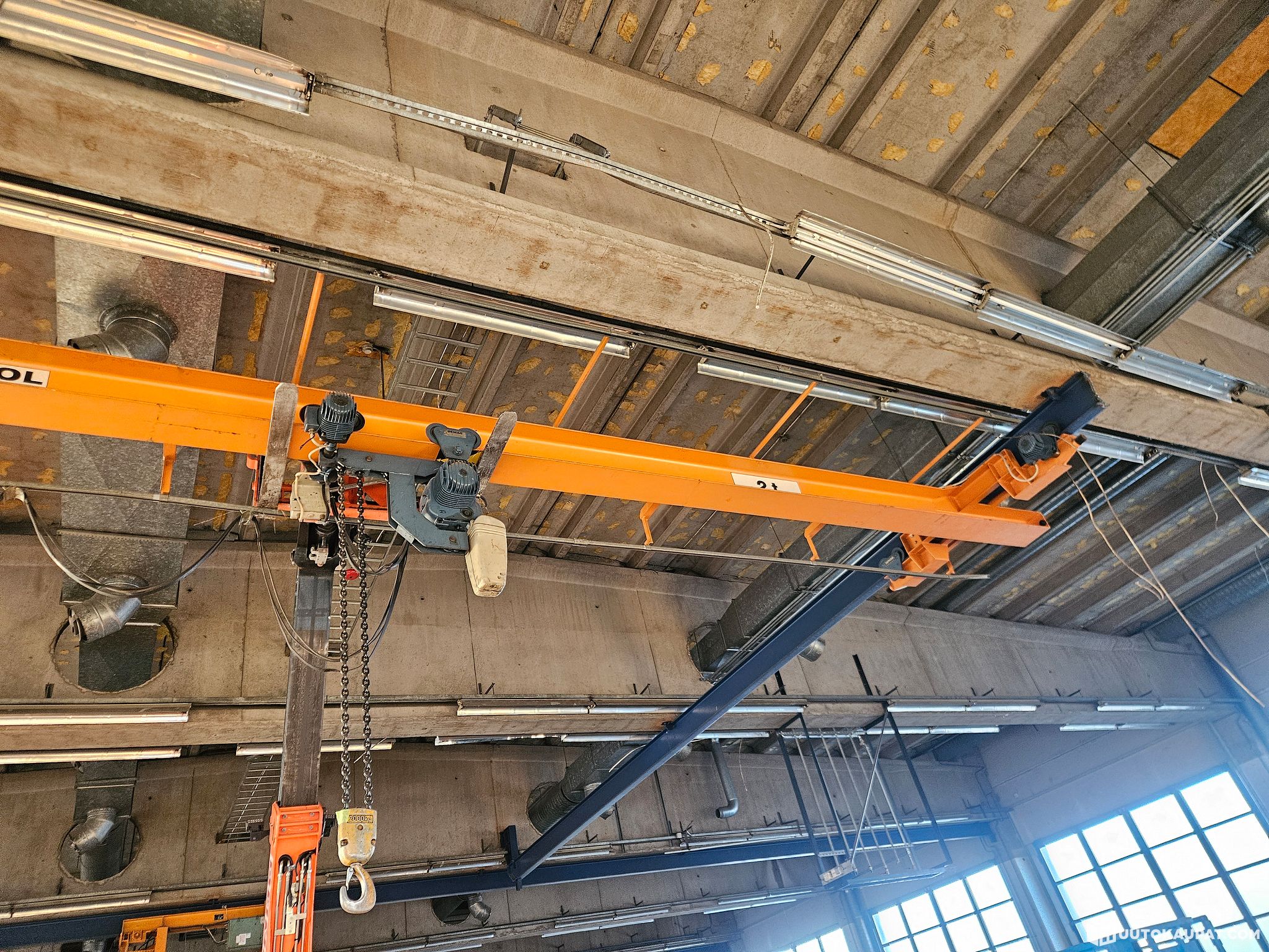 Used bridge crane with 2 t lifting capacity for sale.