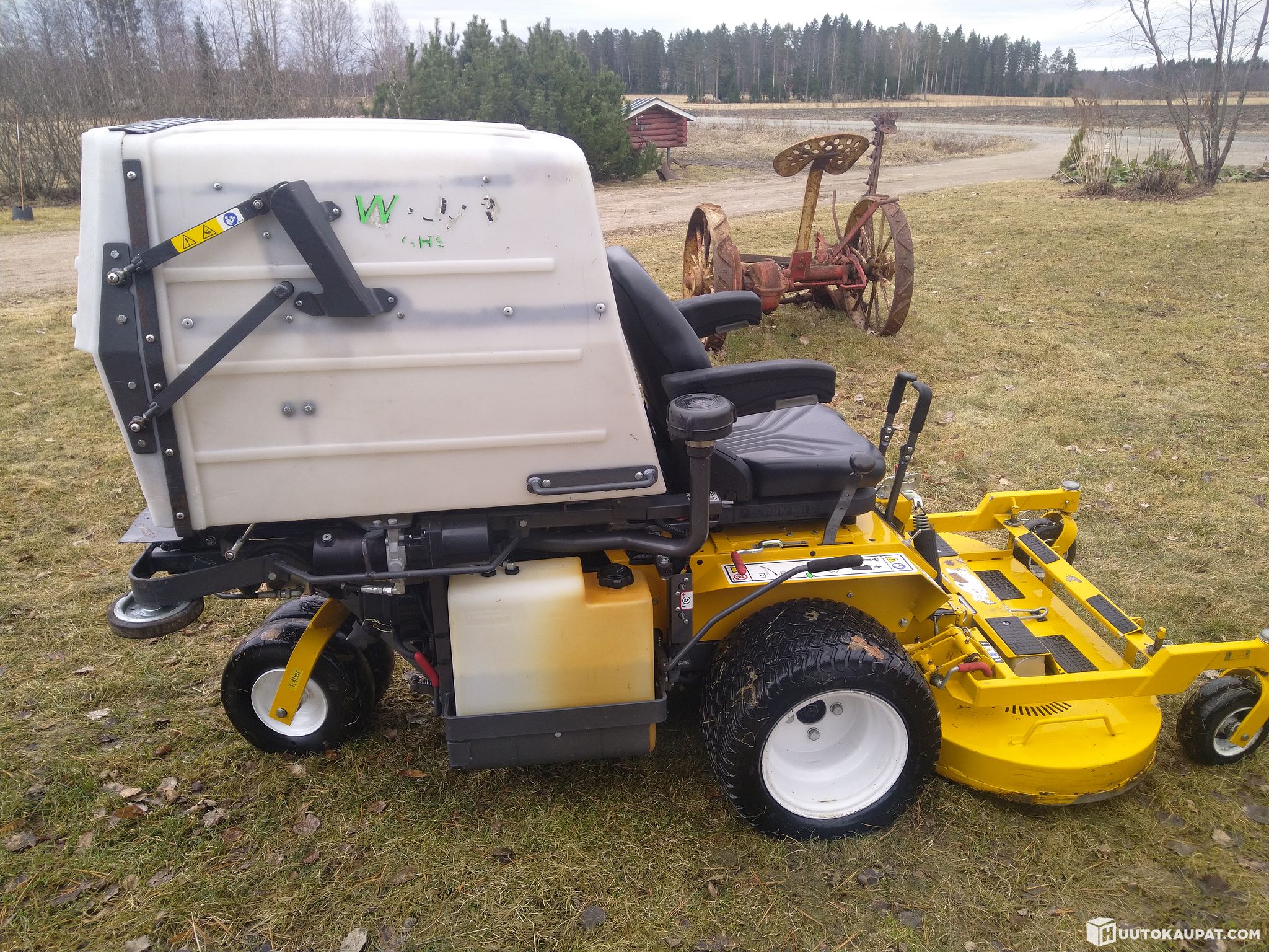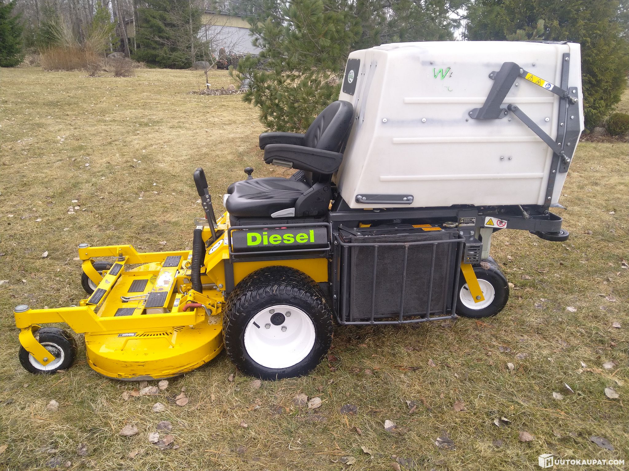 Well-maintained collecting front mower with a high‑tipping collector. Commissioned in 2011. Very handy and manoeuvrable. Fitted with a reliable Kubota 3‑cylinder diesel engine. Produces a neat cutting finish. Regularly serviced. Complete service book and user manual included. Safety switches and other items are all in working order. Grammer suspension seat with armrests. This machine has, for example, an alarm if temperatures begin to rise too much (e.g. if the radiator grille cleaning is forgotten) so the machine does not overheat.