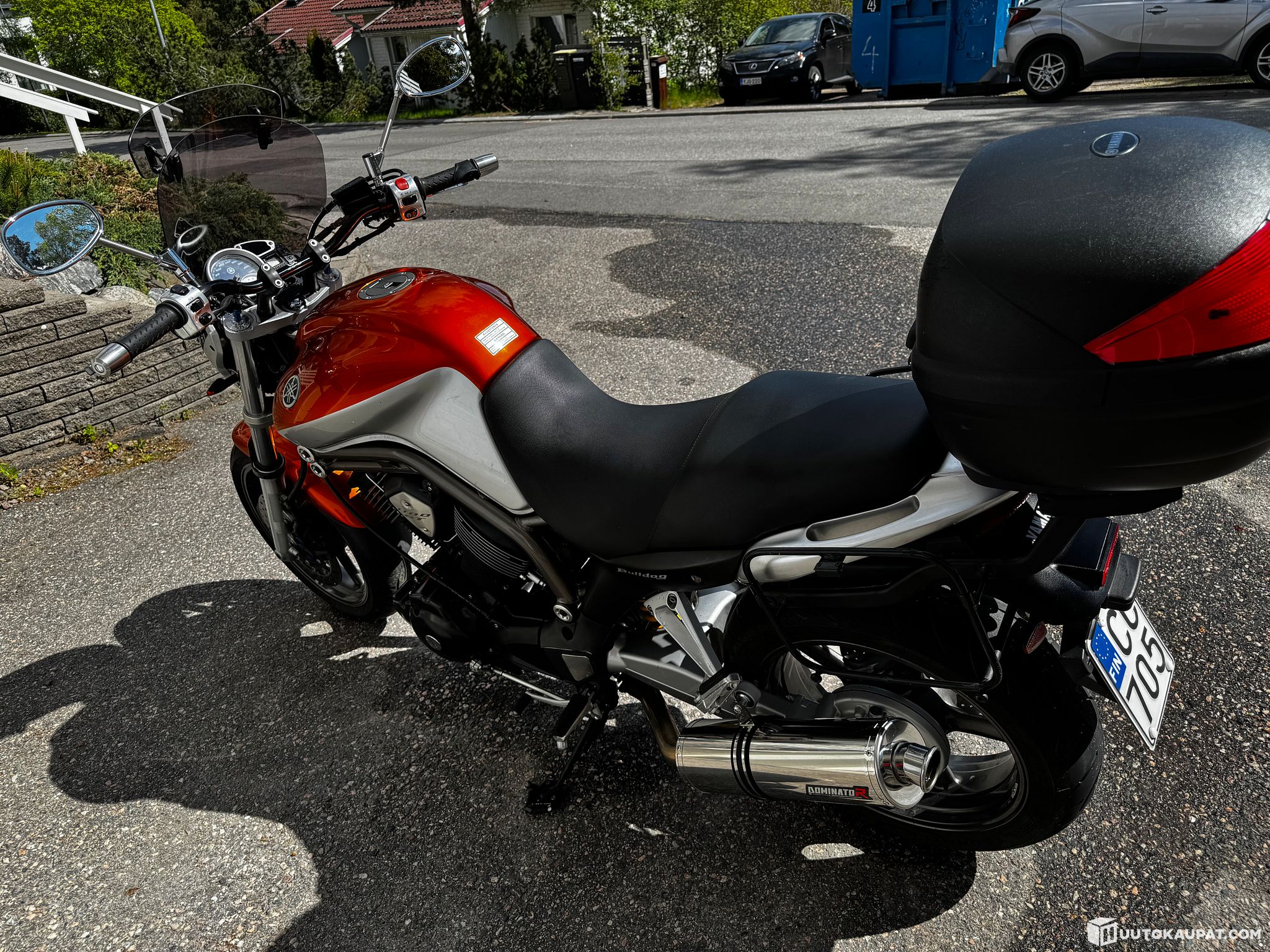 No scratches or dents — a very well preserved example. Standard exhausts included, and three luggage bags. All fluids changed in autumn 2025. The only downside I know of is one front fork seal is slightly weeping, but very little. Also included is a low fairing matching the bike's colour. The bike also has heated grips. Tyres have been used for 300 km.