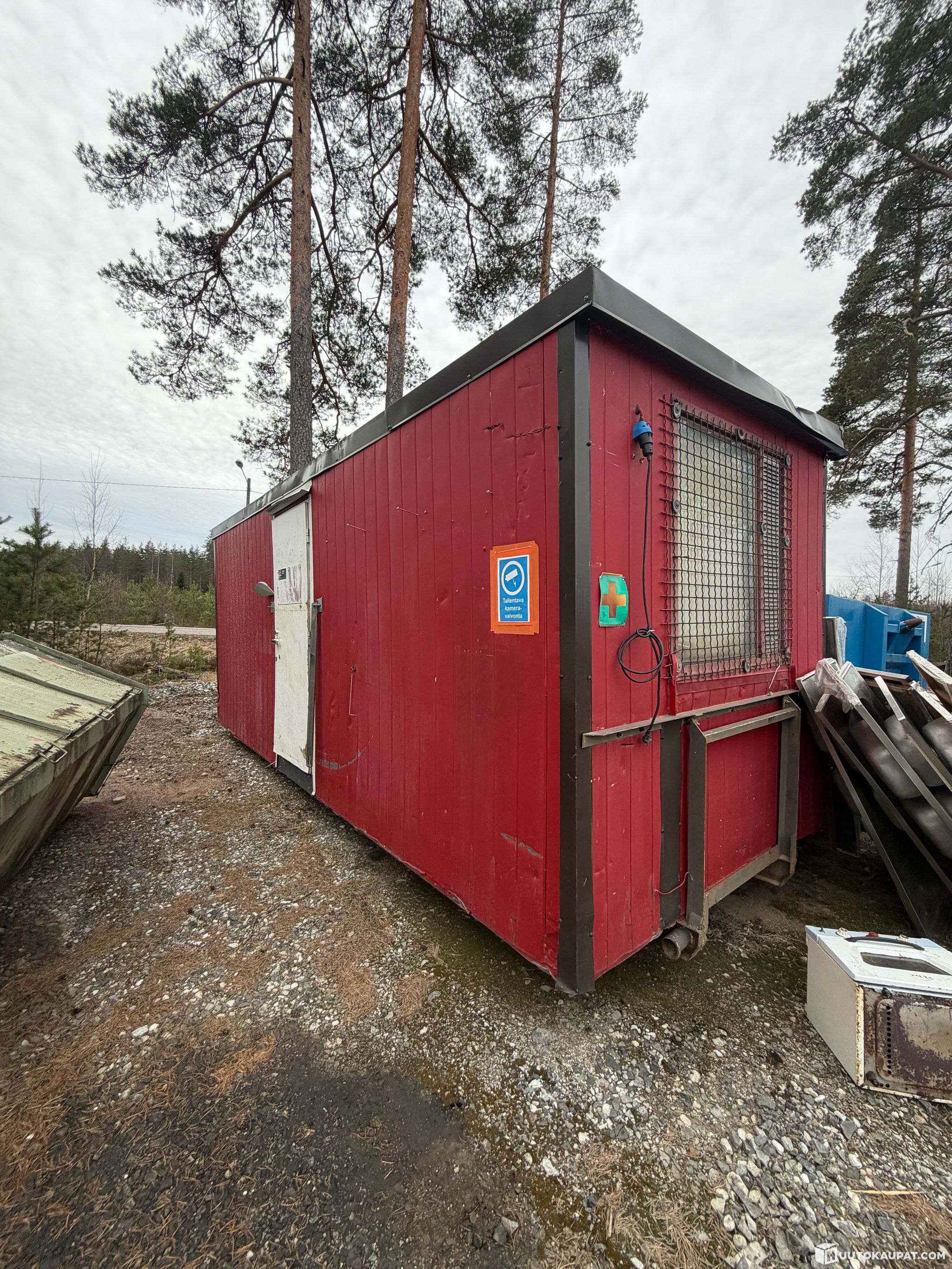 For sale: a site cabin on hook-lift rails.