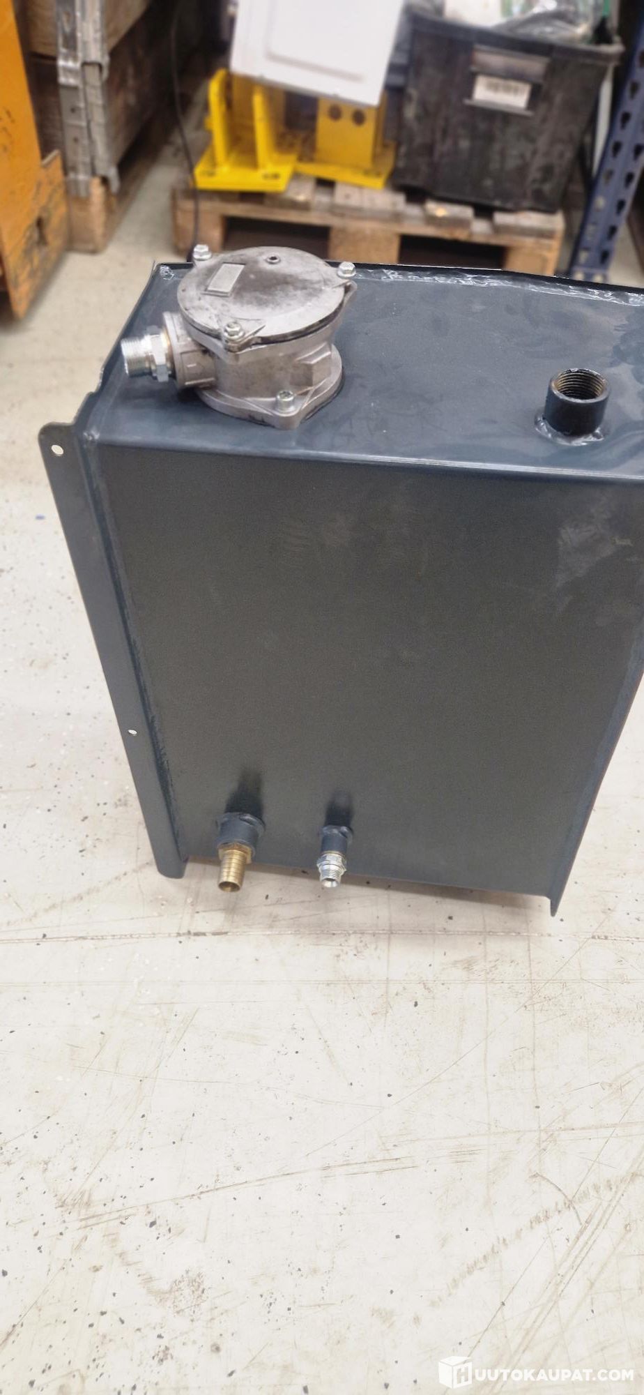 Hydraulic oil tank. Also includes return filter and mounting foot. Tank dimensions in the pictures.