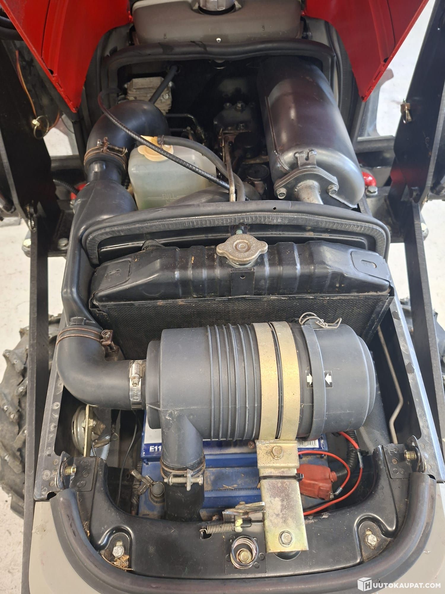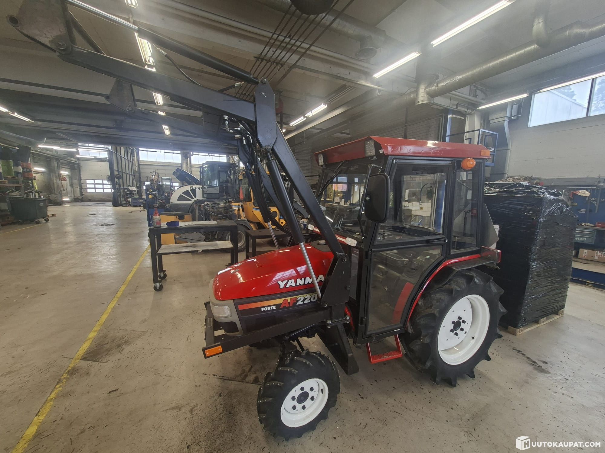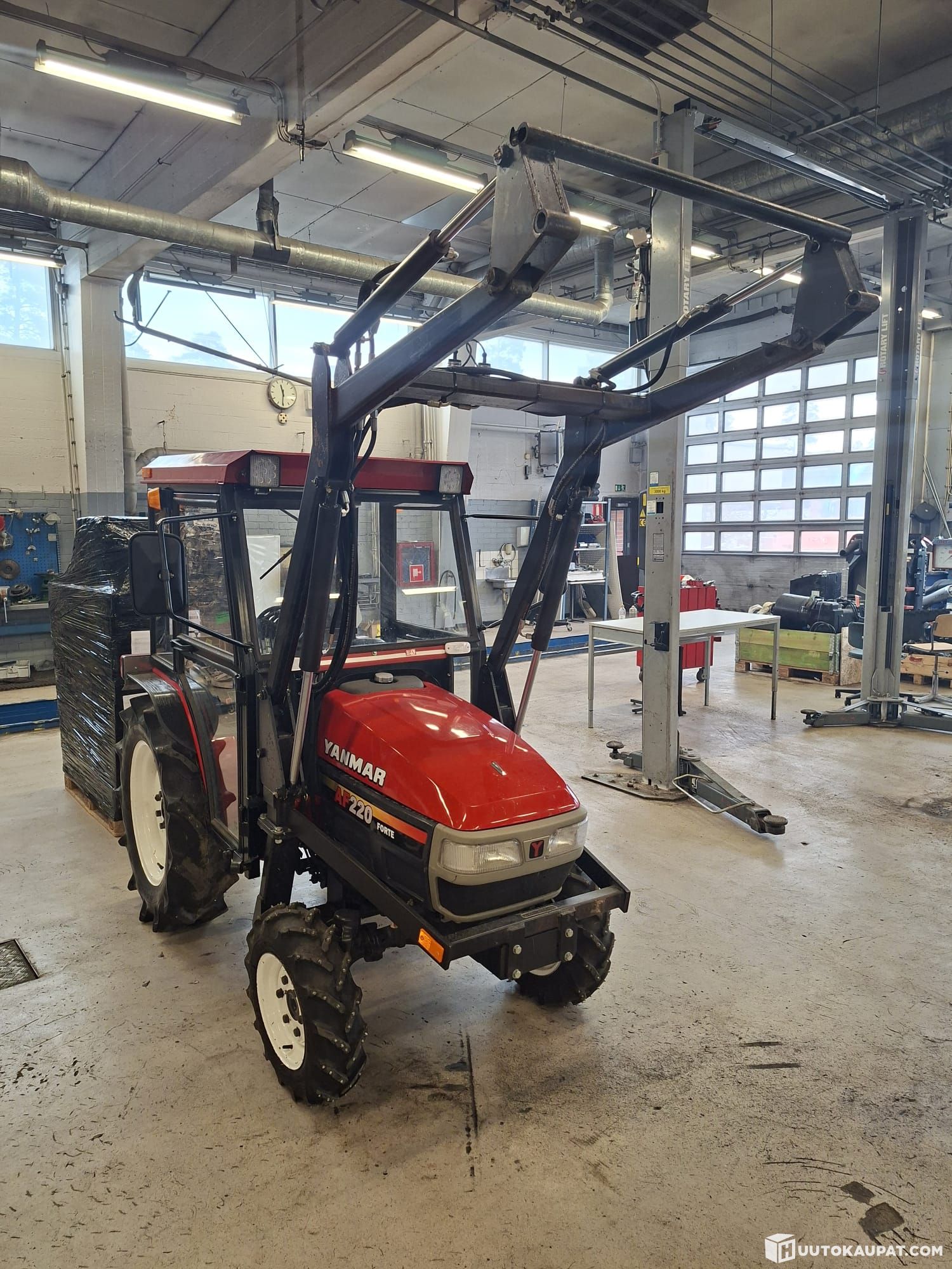 Rarely available! Well-maintained Yanmar F220 garden tractor with front loader. Engine: Yanmar, 22 hp (≈16.4 kW), 1.2‑litre, 3‑cylinder. 3‑point linkage. PTO. Heated cab. Front loader. Hydraulics. Tilt on right lift arm. Registered compact tractor.