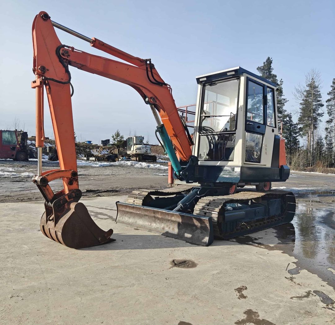 On display at the Loimaa location. The machine has few hours and is sold for repair. First and third gear do not stay engaged. Also needs new batteries. Otherwise appears to be working.