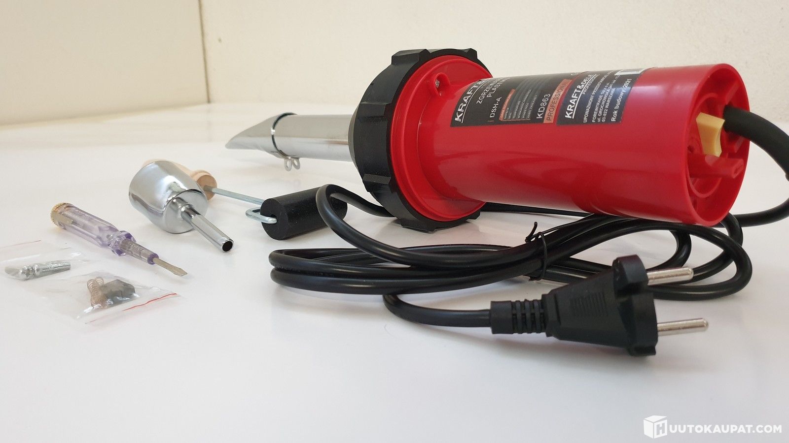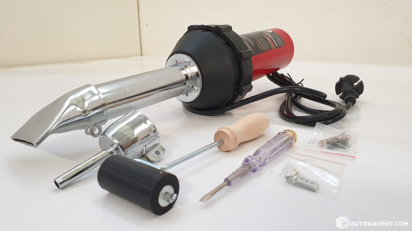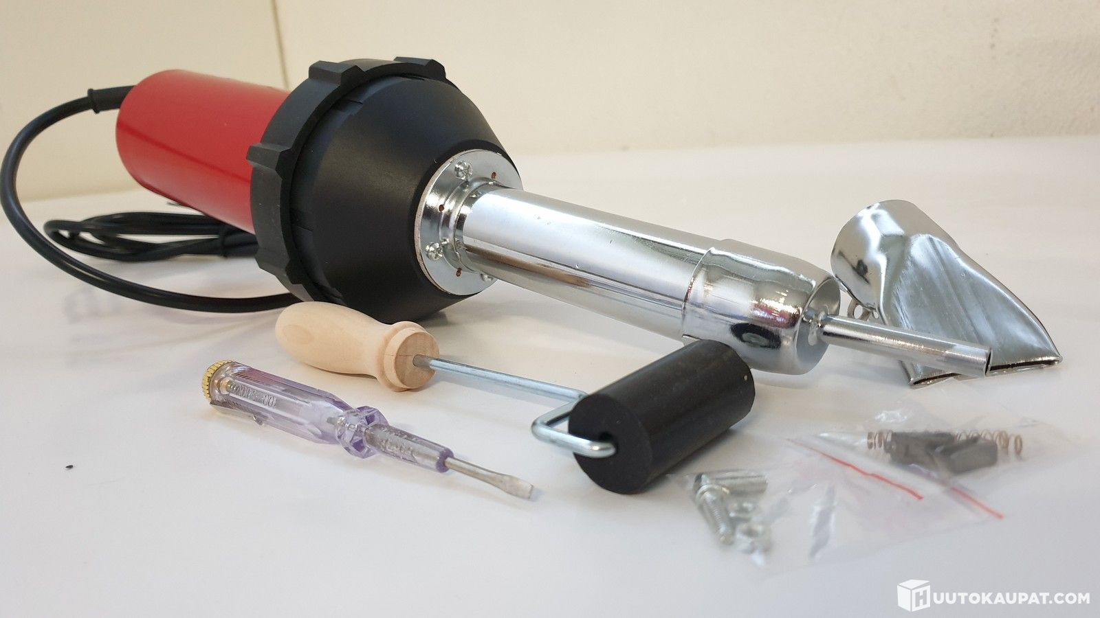 The device is also used for reshaping, detaching, drying, removing films, varnish and paint, and for joining pipes and other plastic profiles.