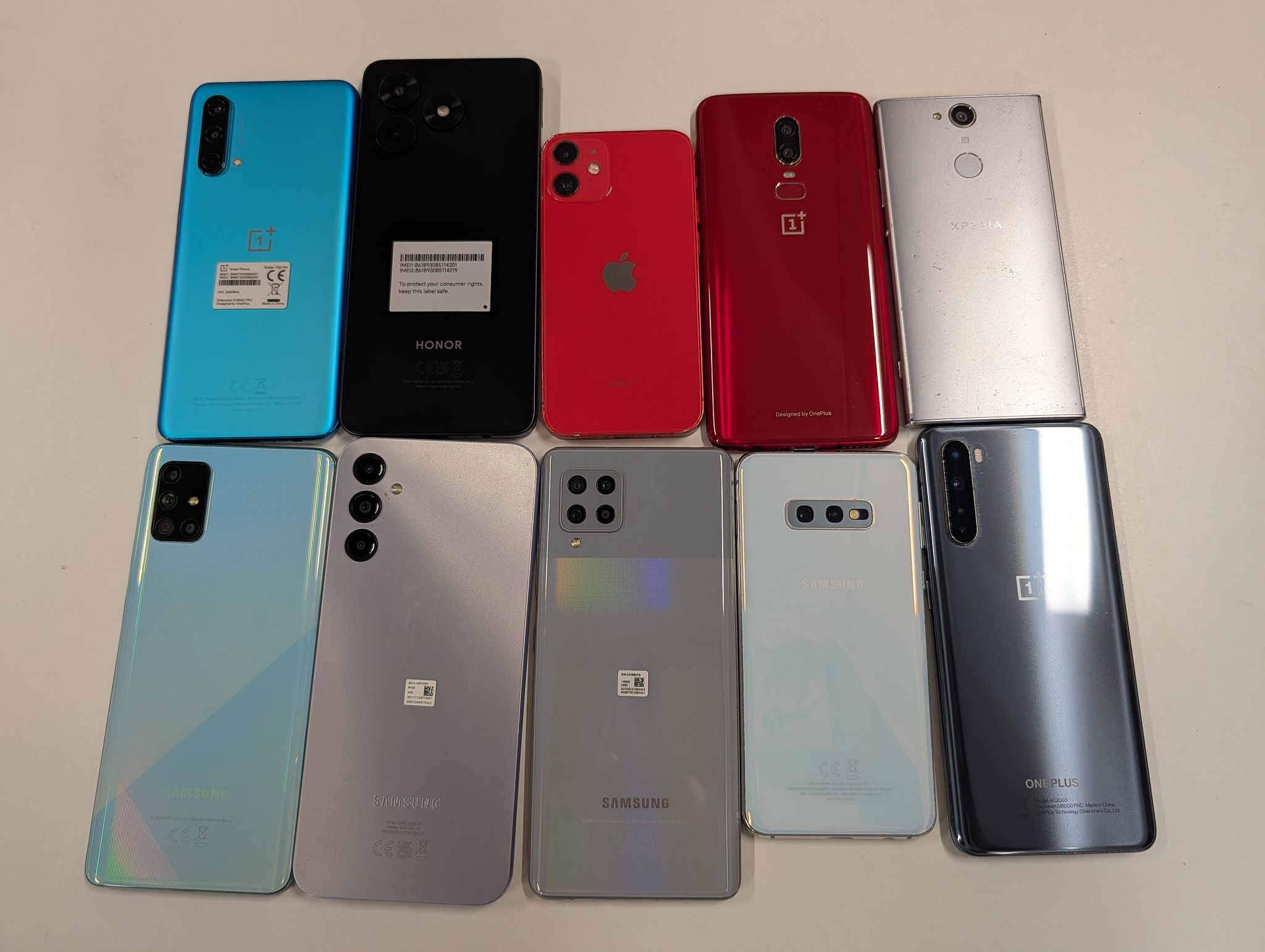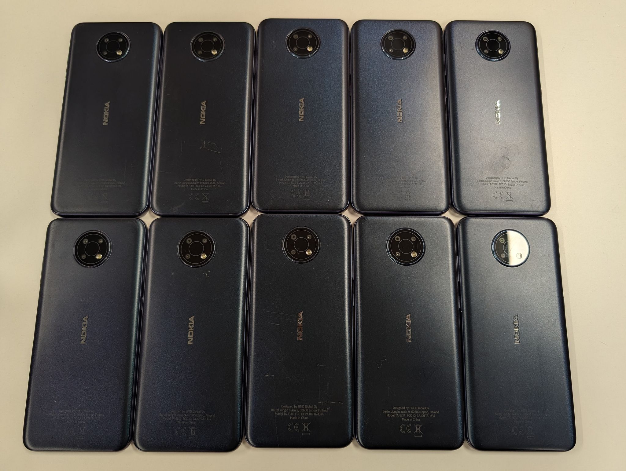 There are small individual marks on the devices.
