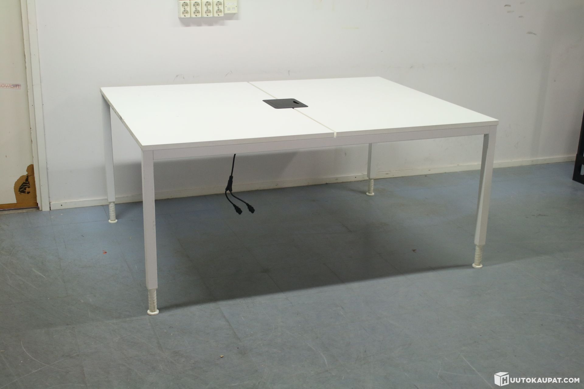 Sturdy, large desk with a white top.