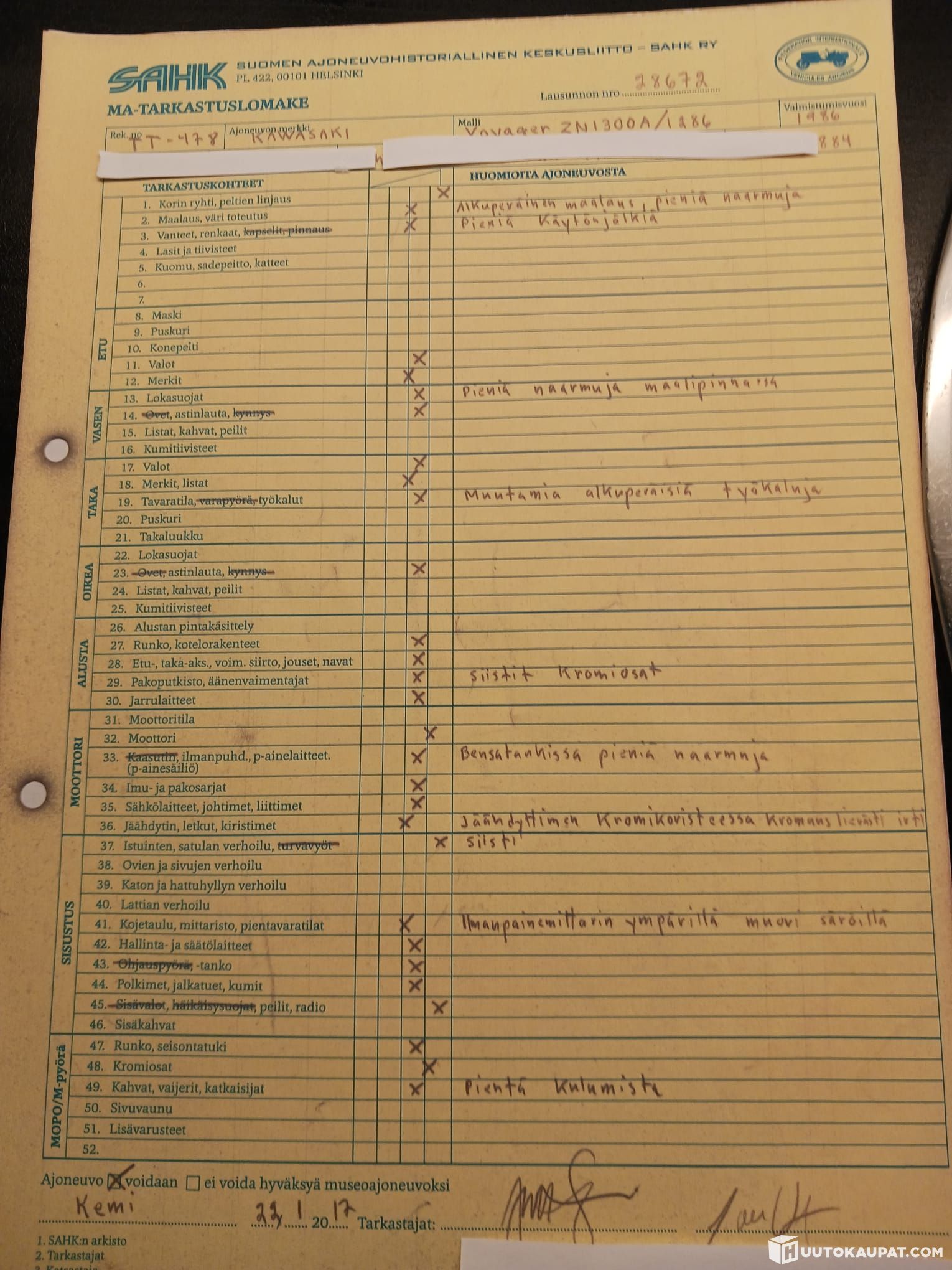 KAWASAKI VOYAGER ZN 1300, 1986. First of the production line. Registered as a Kawasaki museum piece. Low-cost insurance. Mileage 96,000 km. Reg. TT-478. More information tel. +358 50 543 8622