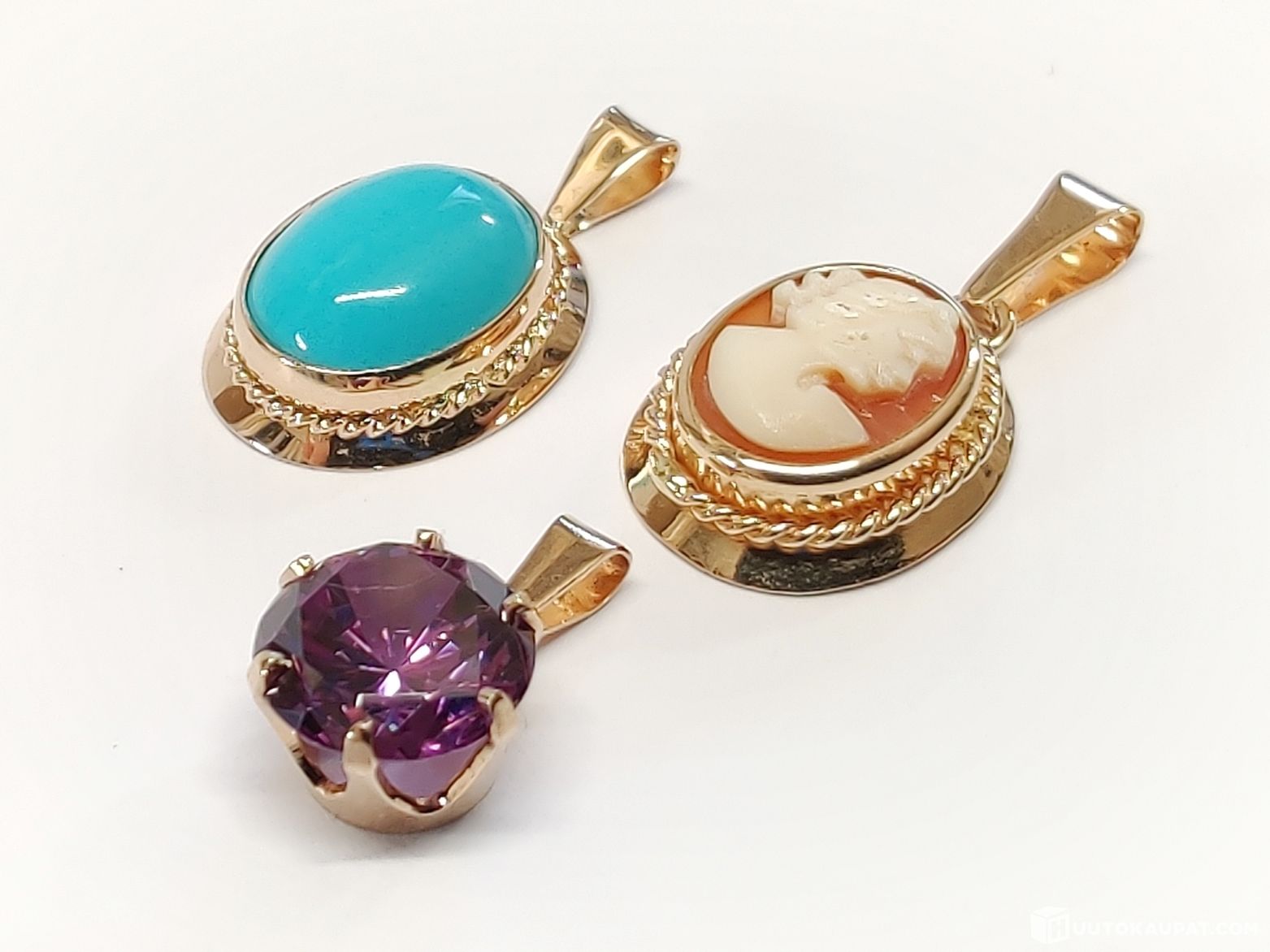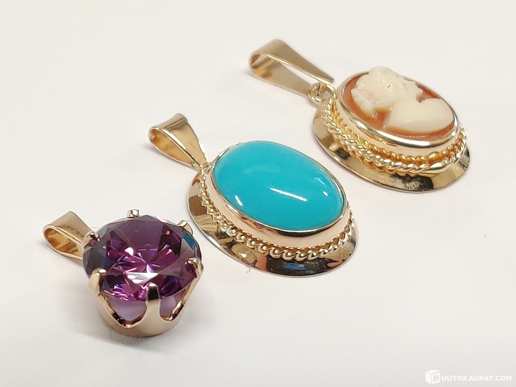 Three Finnish 14ct gold pendant necklaces.