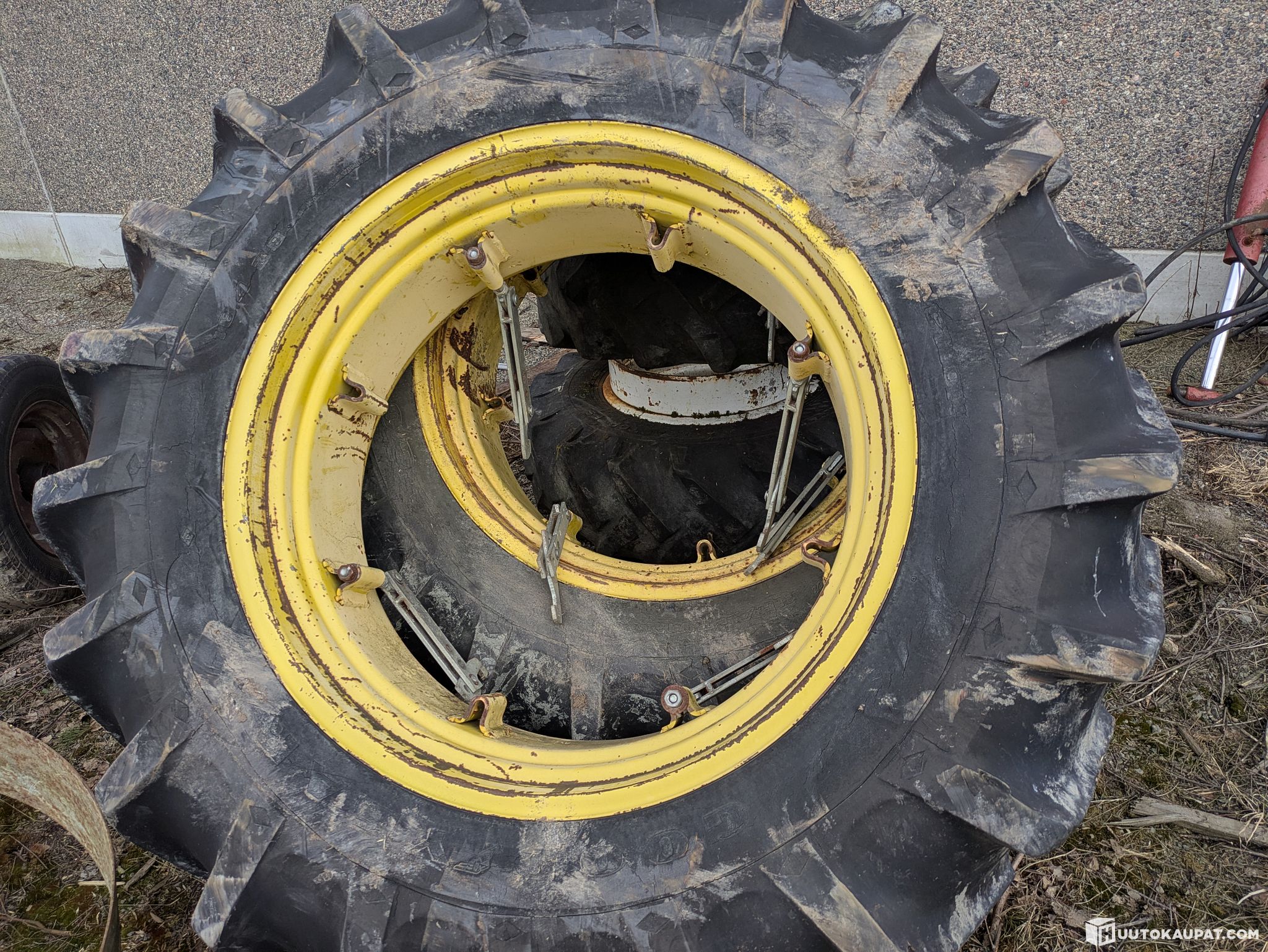 Pair of wheels in fair condition — front and rear.