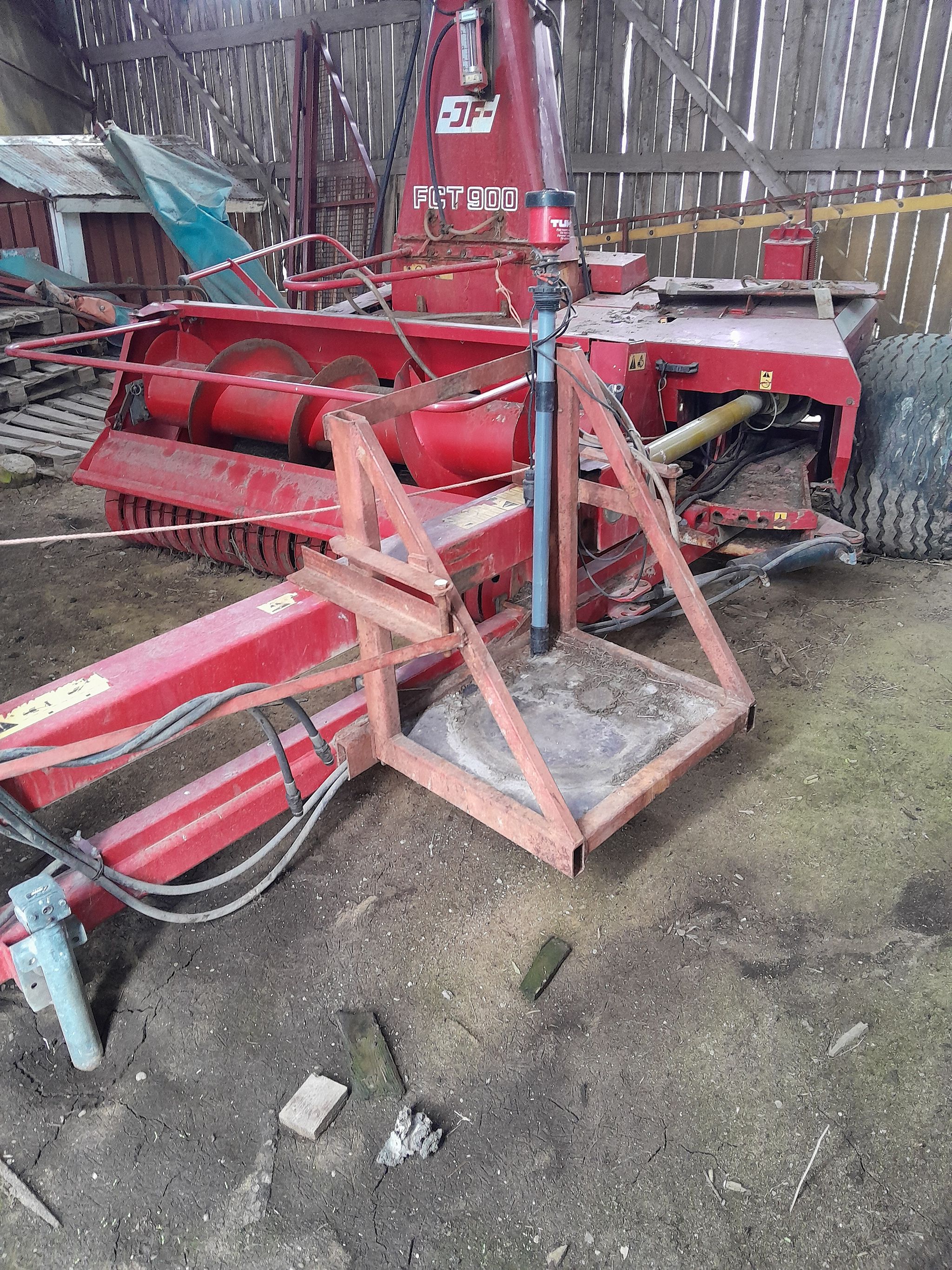 JF general-purpose trailer fitted for feed and manure. Stored indoors, in excellent working condition, PTO shaft included.
