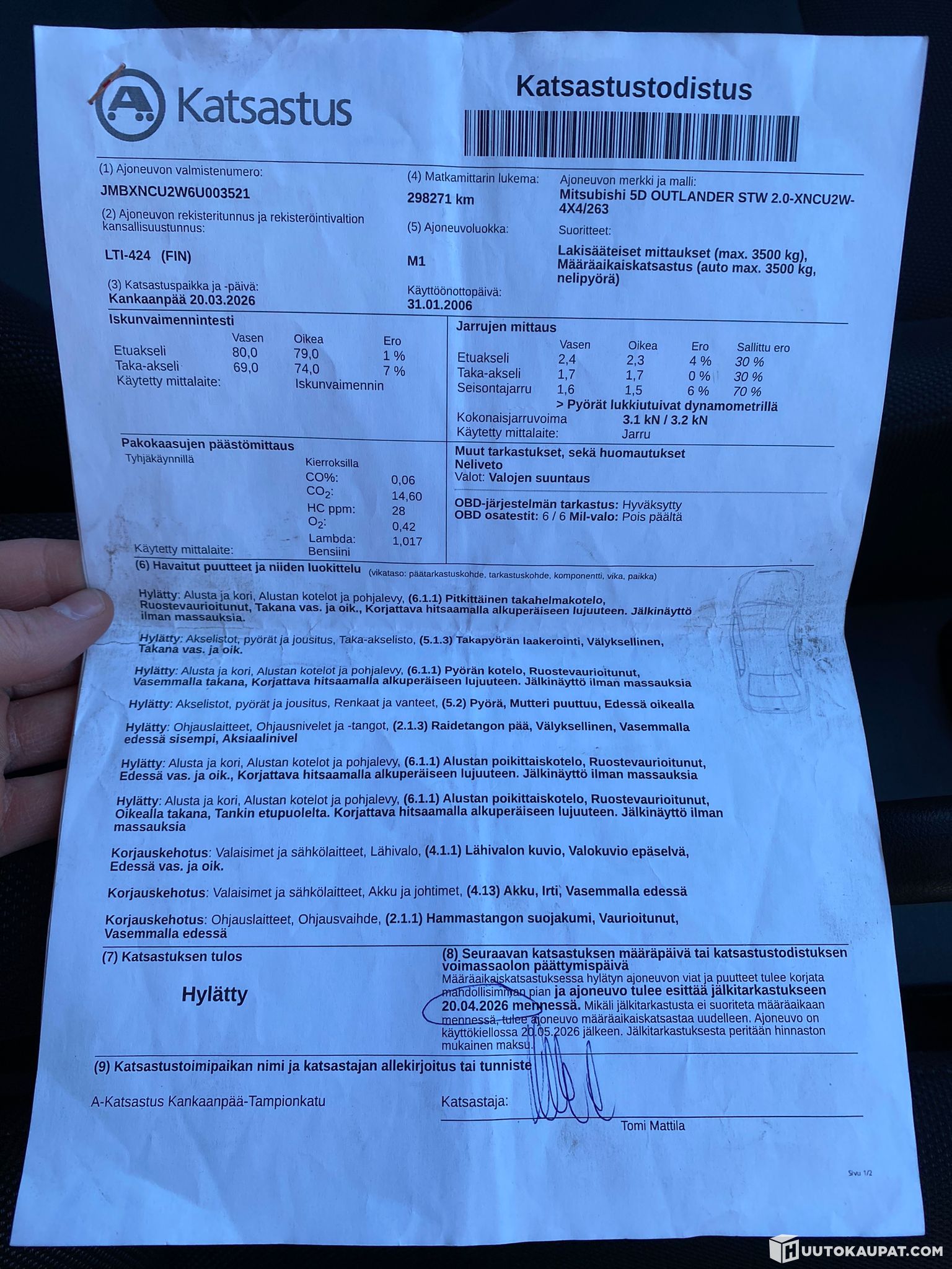 Inspection valid: March 2026 / Last inspection failed, inspection appointment expires 20/05/2026 / See photos