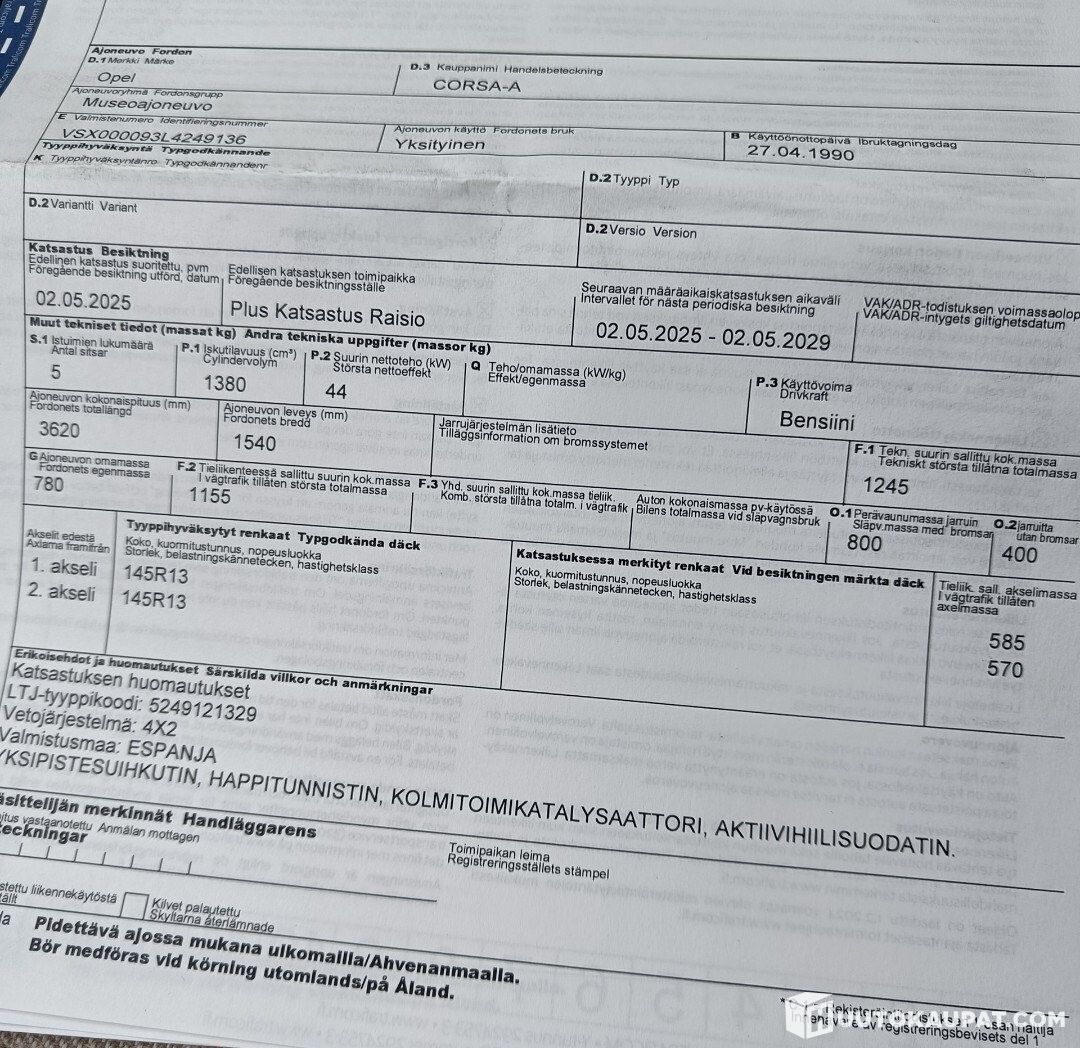 The vehicle must be collected within 7 days of the auction ending unless otherwise agreed - Huutokaupat.com.